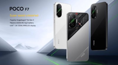 Pertama, POCO F7. Telefon ini dikuasakan oleh Snapdragon 8s Gen 4 dan bateri berkapasiti 6500mAh dengan pengecasan pantas 90W HyperCharge.