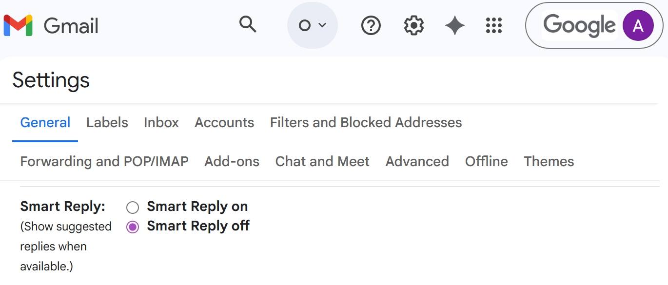 - Di bahagian yang sama, anda semak bahagian Smart Reply untuk nyah aktifkan ciri tersebut.