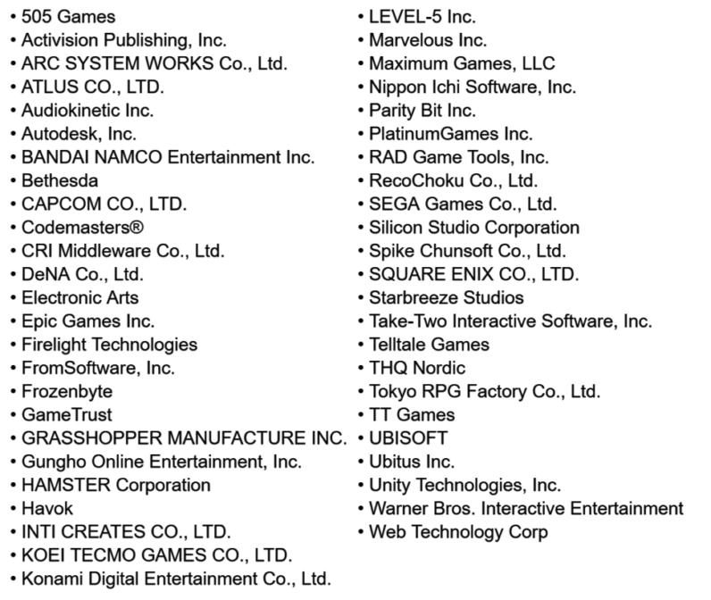 Dibawah merupakan senarai penerbit serta pemaju perisian yang digunakan oleh Nintendo Switch: