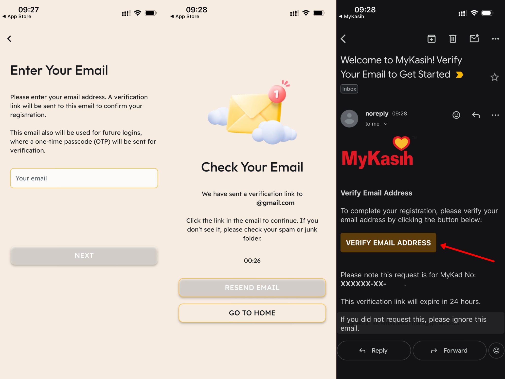Kemudian, log masuk semula ke aplikasi MyKasih dan ikut langkah di bawah.