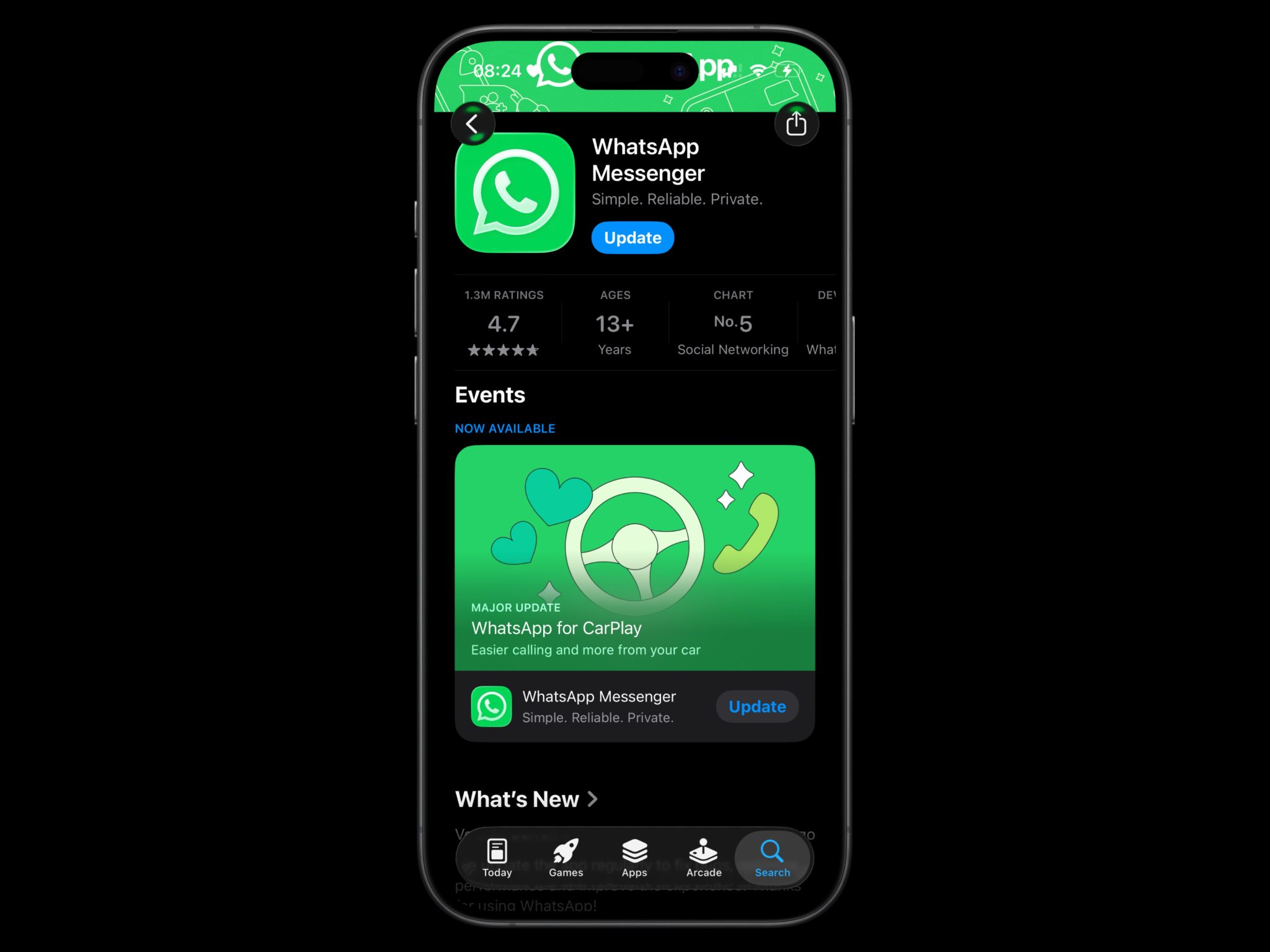 Melalui WhatsApp untuk CarPlay, pengguna boleh membuat panggilan dan menghantar mesej terus dari paparan dalam kereta dengan lebih mudah dan pantas. Kemas kini ini turut membawa antara muka khusus untuk CarPlay.