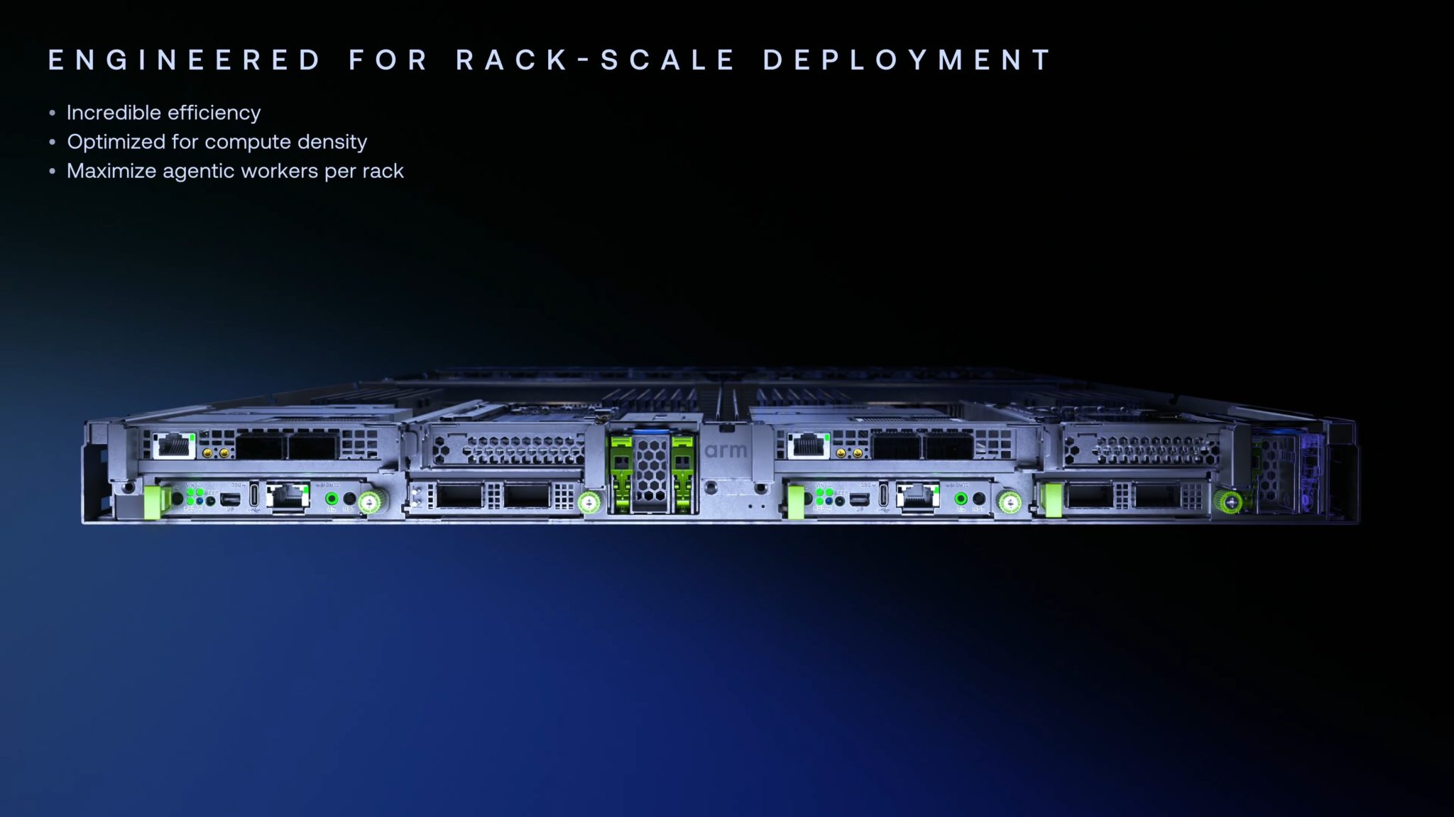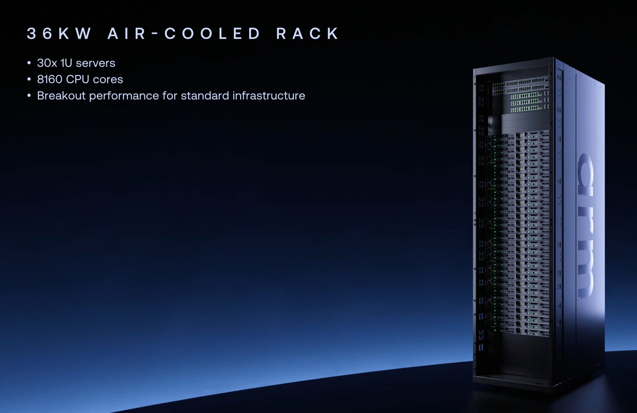 Dalam konfigurasi ini, rak pelayan boleh memuatkan sehingga 336 cip Arm AGI, menghasilkan lebih daripada 45,000 teras pemproses, sesuai untuk pusat data yang memerlukan kuasa pengiraan ekstrem.