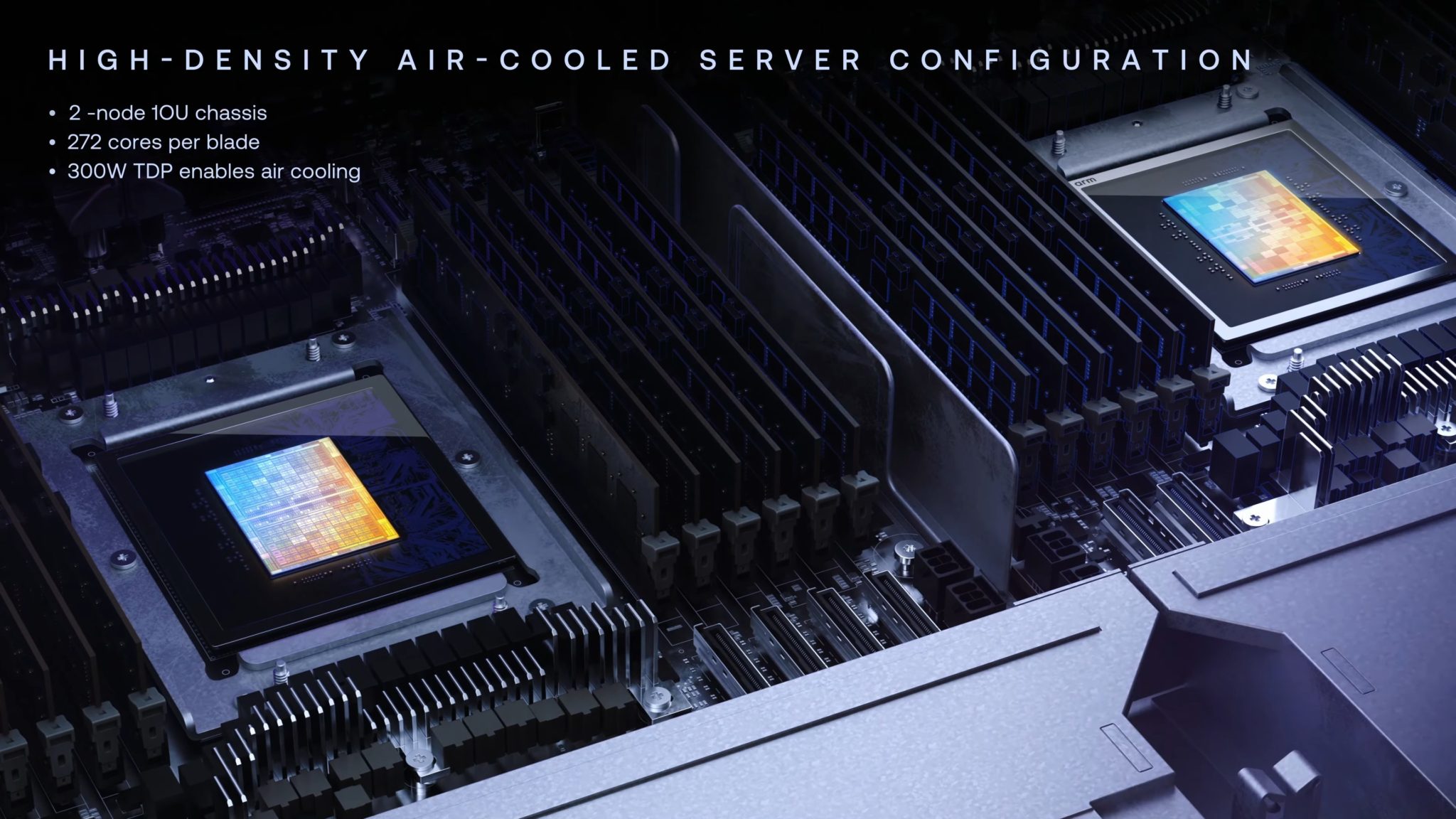 Konfigurasi pelayan rujukan oleh Arm ini pada asasnya direka untuk memaksimumkan kepadatan pengkomputeran dalam pusat data moden.