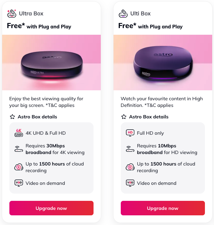 Sebagai pengguna biasa, jika saya mahu menonton saluran Astro seperti Ria, Prima, Citra atau saluran lain dalam pek hiburan mereka, saya mesti melanggan pelan Astro yang memerlukan penggunaan Ultra atau Ulti Box. Semua akses penuh tertumpu kepada kotak tersebut. Masalahnya, pelan ini hadir bersama kontrak 24 bulan.