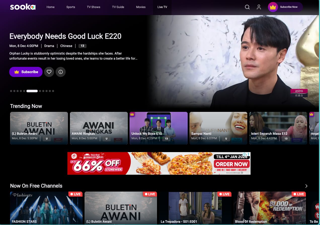 Memang Astro ada Sooka, dan ia langkah ke arah yang betul. Cuma, Sooka masih jauh daripada keselesaan model streaming sebenar. Live TV di Sooka terhad, dan tidak mencerminkan penawaran penuh Astro.