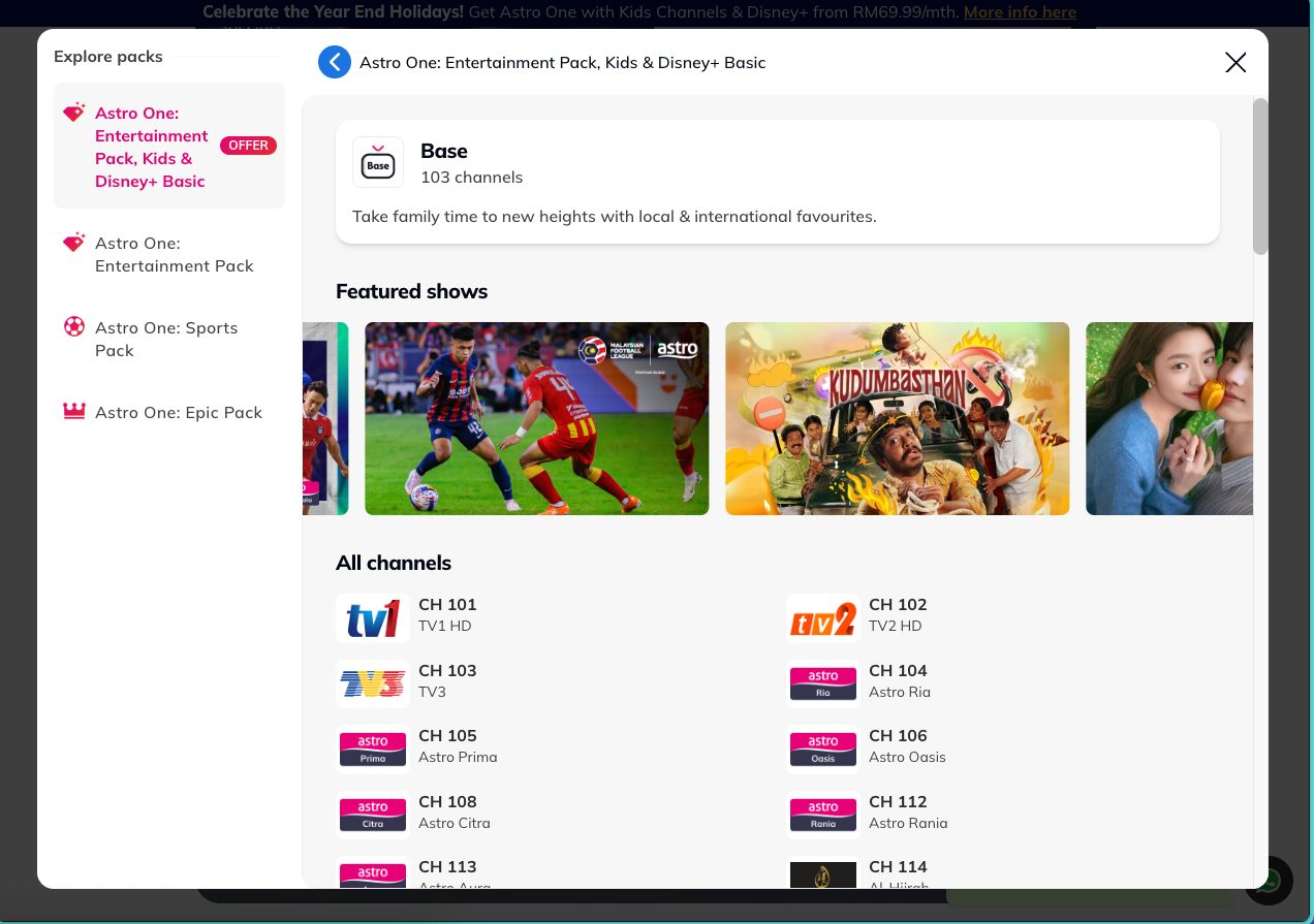 Mana pergi senarai penuh siaran TV yang ada dalam ‘Astro TV Packs’? Tiada.