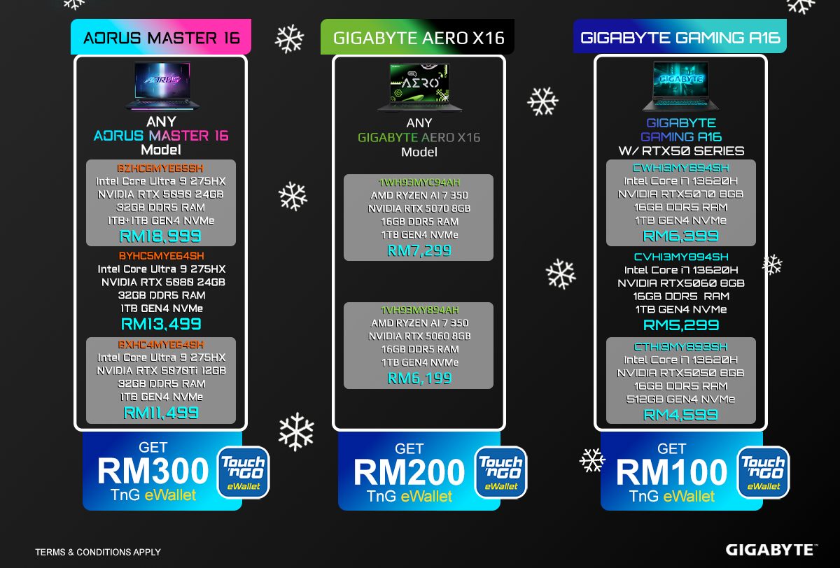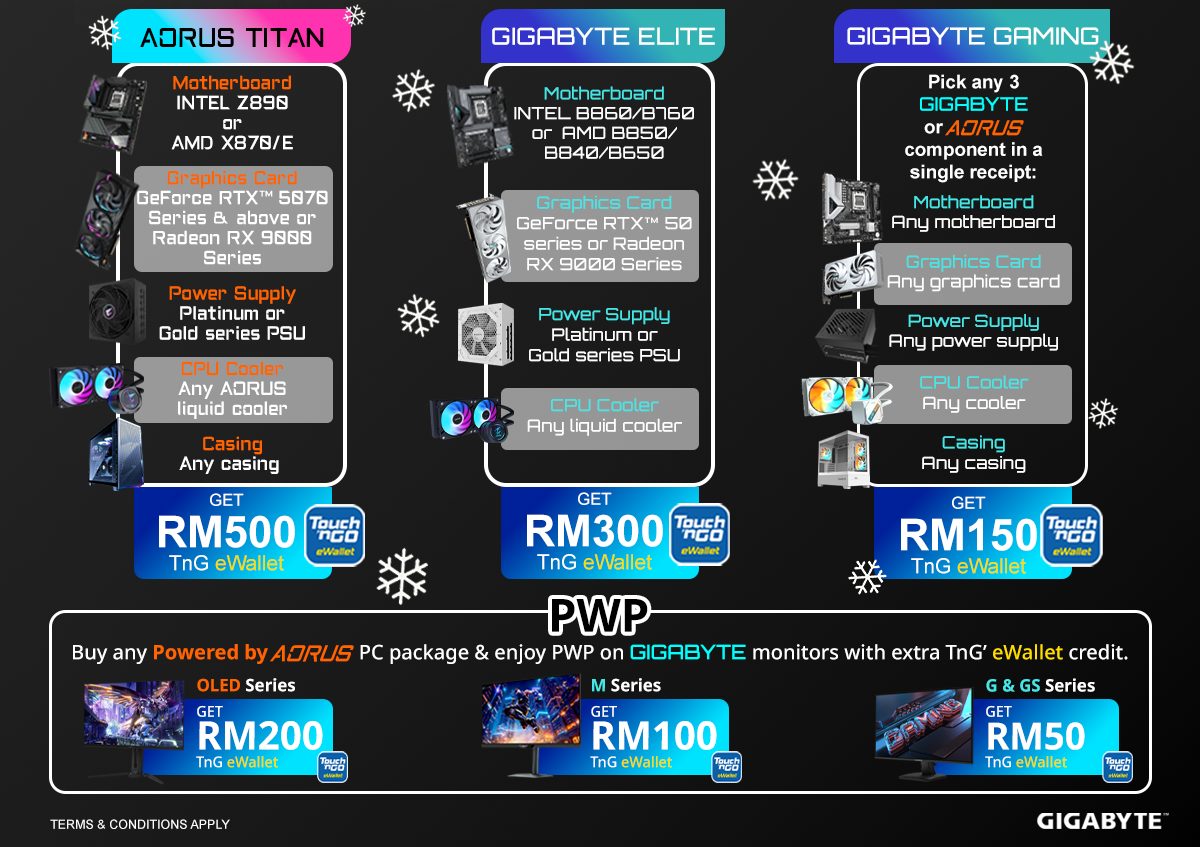 Dengan promosi ini, anda boleh menikmati diskaun eksklusif serta ganjaran menarik apabila membeli perkakasan dan komputer riba AORUS/GIGABYTE.