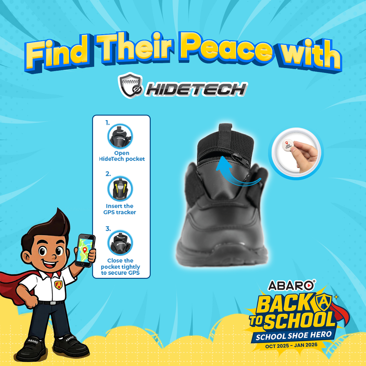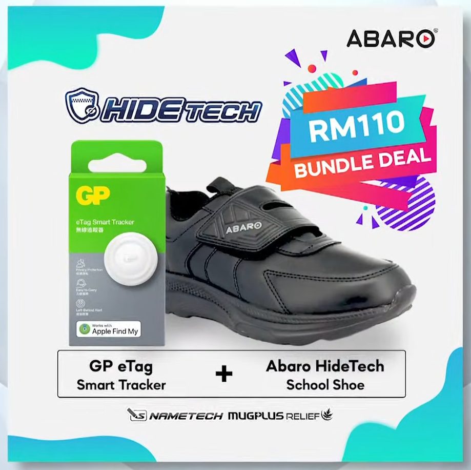 Ciri HideTech tersebut tersedia menerusi 3 model kasut sekolah ABARO di mana ABARO turut menawarkan pembelian bundle kasut sekolah bersama peranti penjejak yang berharga RM110.