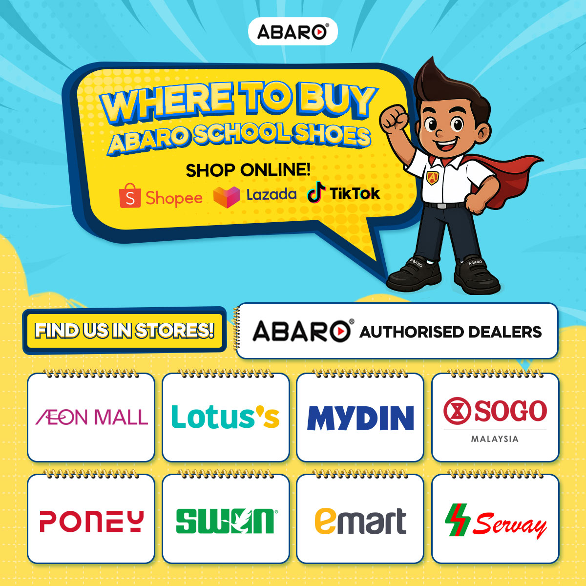 Pelanggan kini boleh dapatkan kasut sekolah ABARO dengan harga promosi sehingga 12 Januari secara dalam talian atau di semua pengedar sah ABARO.