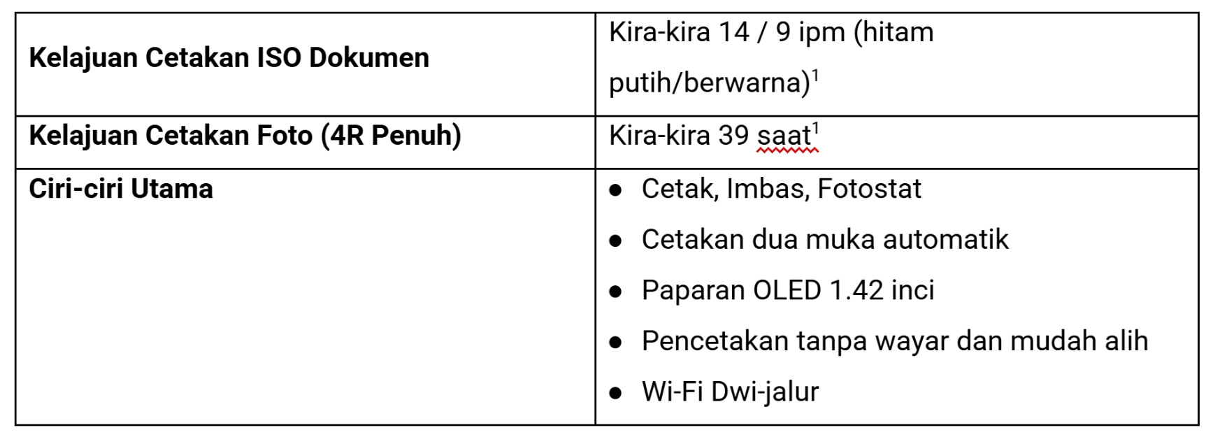 Selain itu, ia menyokong cetakan tanpa wayar melalui aplikasi Canon PRINT, integrasi awan, dan fungsi imbas-ke-telefon pintar.