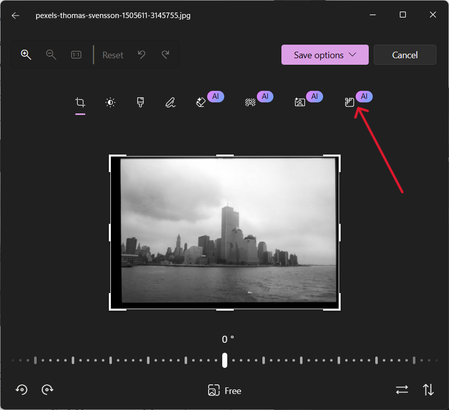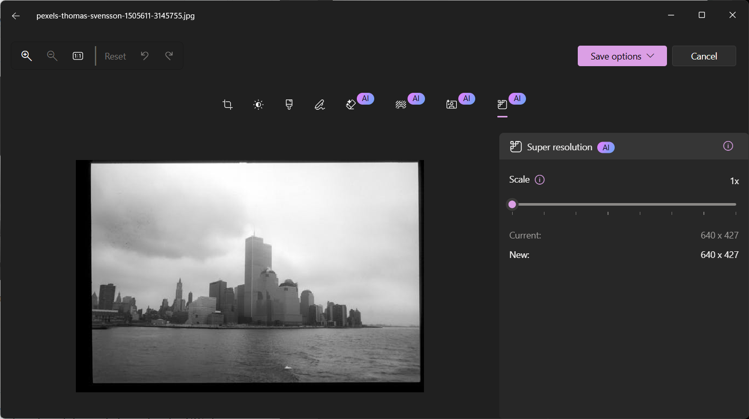 Kemudian anda akan nampak butang pilihan untuk menyunting imej dengan pilihan ciri Super resolution terletak dihujung sekali seperti rajah di bawah.