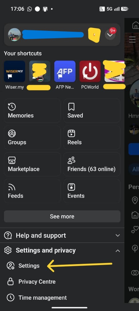 - Seterusnya di bahagian Settings and privacy, klik Settings