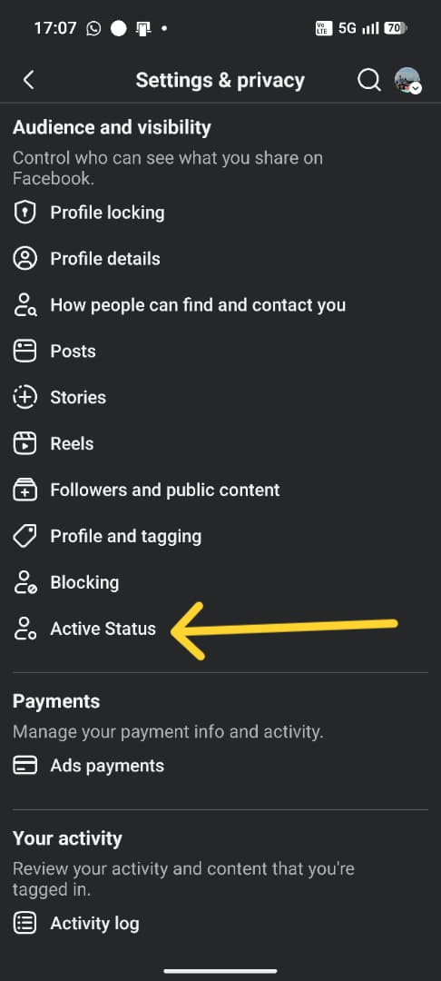 - Akhir sekali, tatal sehingga ke bawah dan anda akan lihat tetapan Active Status.