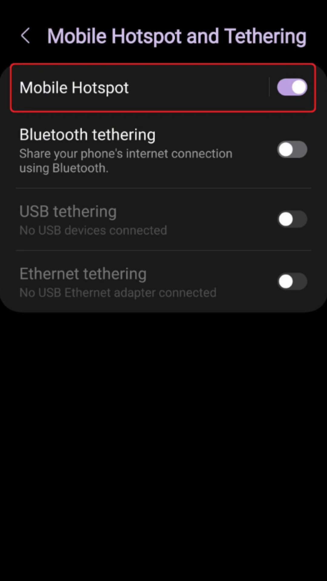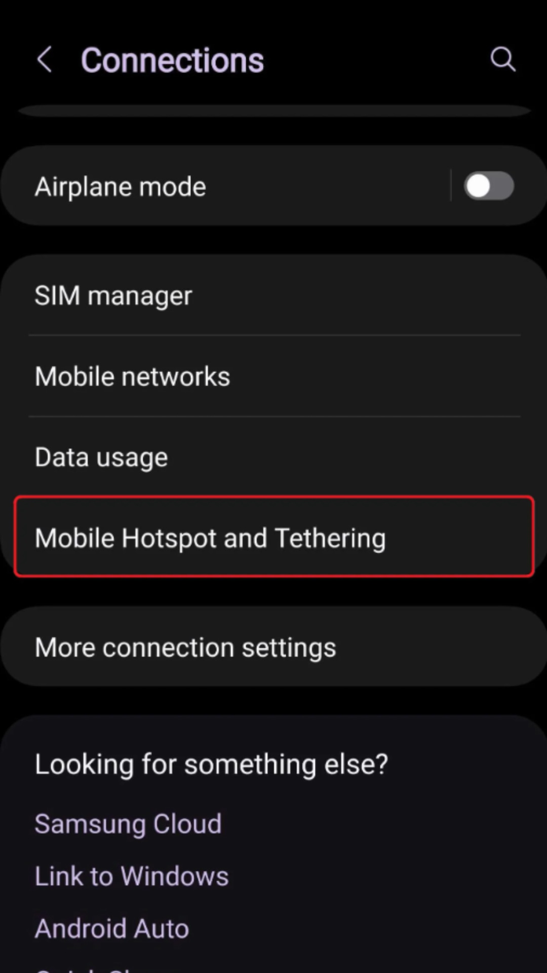 Selepas itu, pilih bahagian “Mobile Hotspot and Tethering” dan tekan “Mobile Hotspot“.