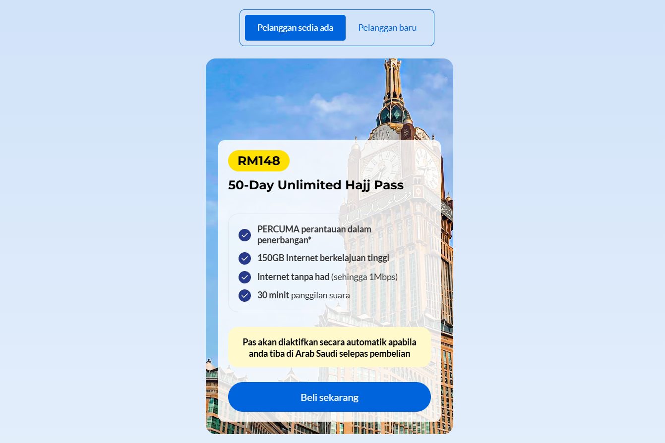 CelcomDigi kini menawarkan Pas Perayauan Haji Tanpa Had 50-hari, yang boleh diperolehi dalam tempoh terhad dari 1 April hingga 30 Jun 2026.