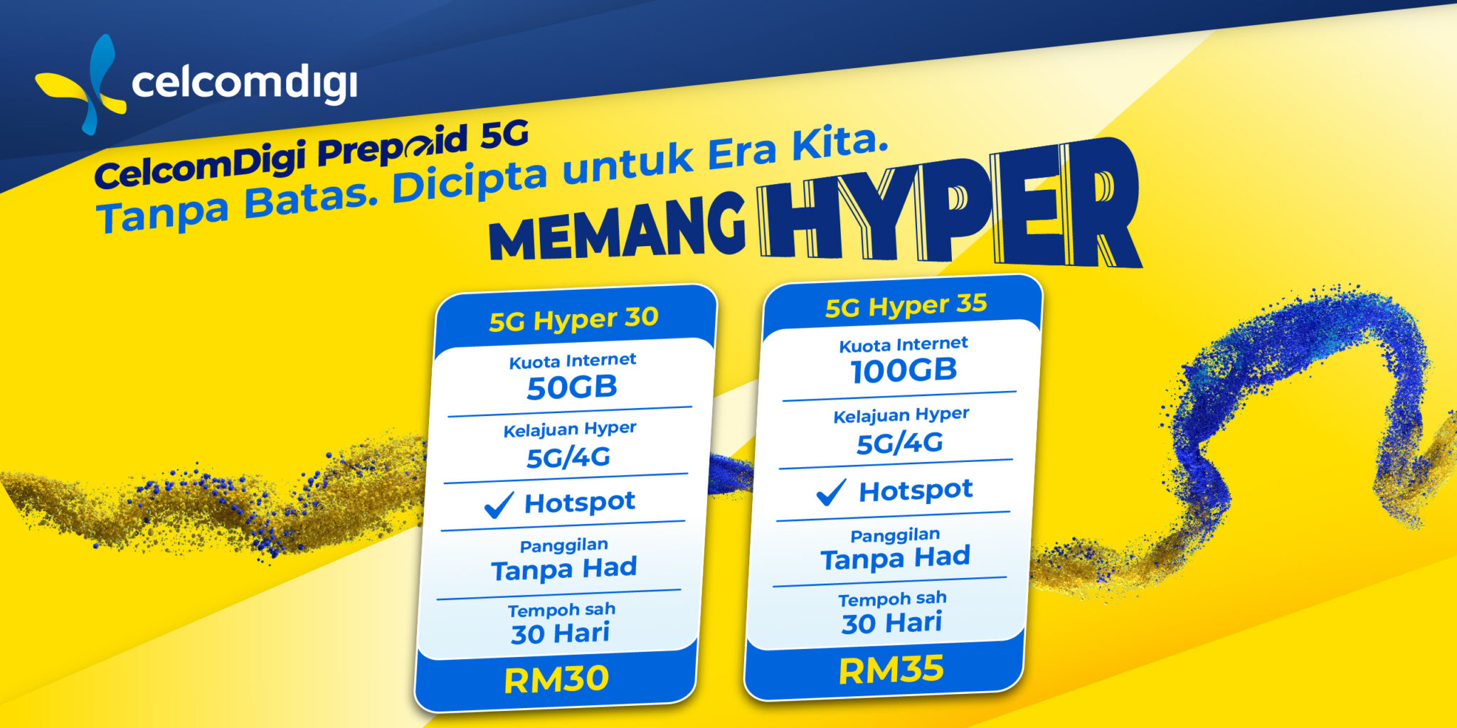 CelcomDigi kini memperkenalkan pas internet mudah alih baharu untuk pengguna prabayar, iaitu Prepaid 5G Hyper dan Prepaid 5G Power.