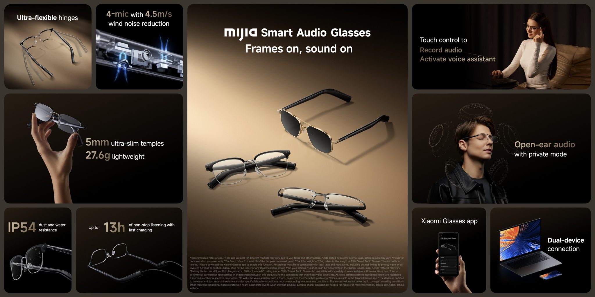 Mijia Smart Audio Glasses tampil dengan rangka ultra nipis 5mm diperbuat daripada aloi titanium, menjadikannya ringan dan tahan lasak.