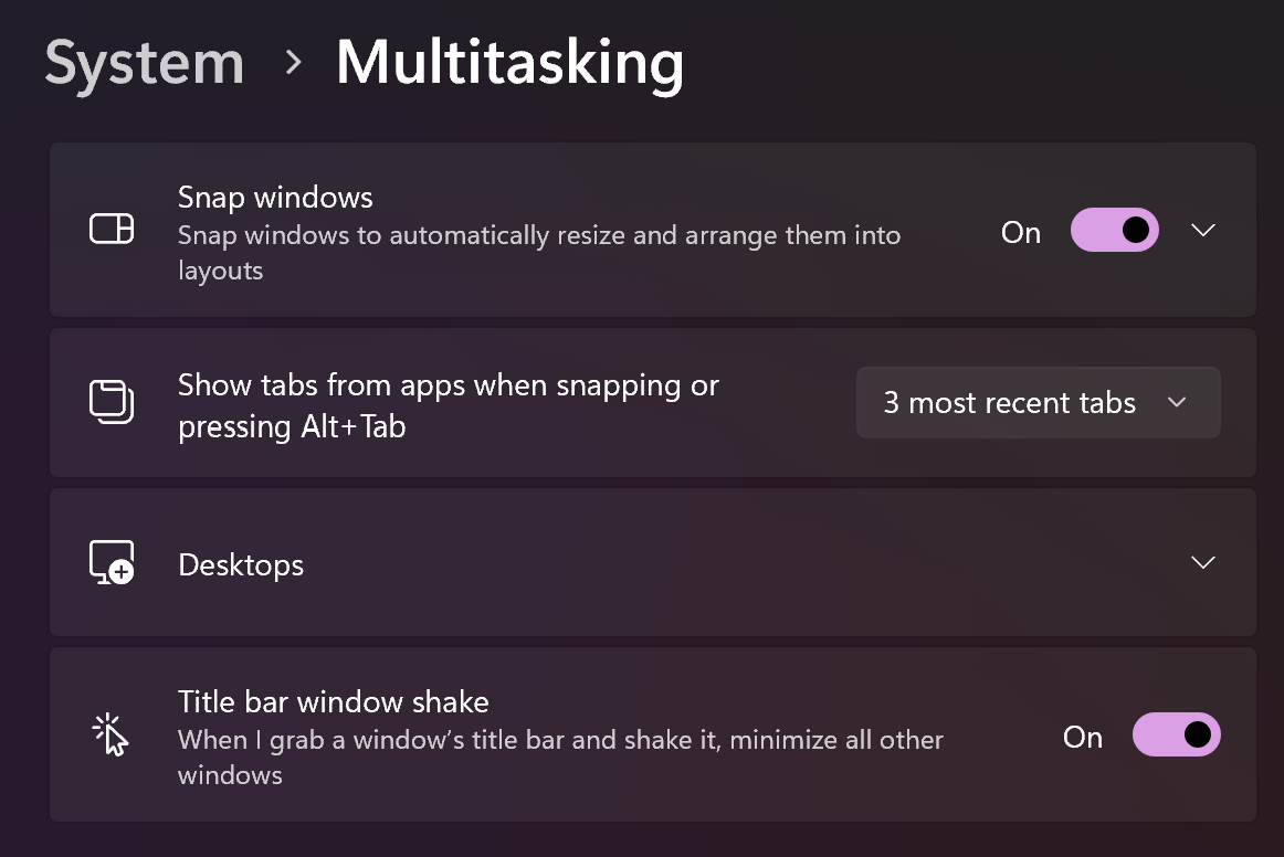 Jadi, untuk mengaktifkan ciri ini, anda perlu melalui Settings > System > Multitasking, kemudian hidupkan pilihan Title Bar Window Shake.