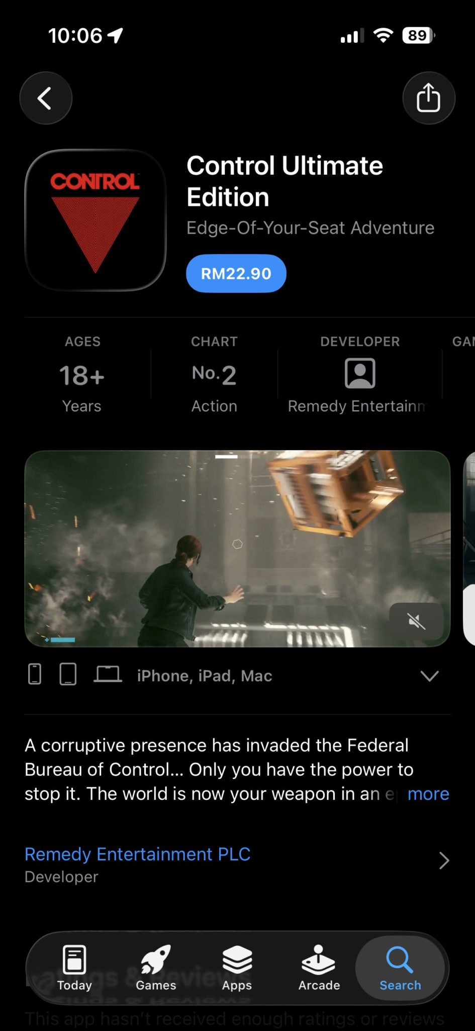 Bagi pengguna yang ingin merasai pengalaman gameplay berkualiti konsol ini, Control Ultimate Edition kini boleh dimuat turun melalui Apple App Store pada harga RM22.90.