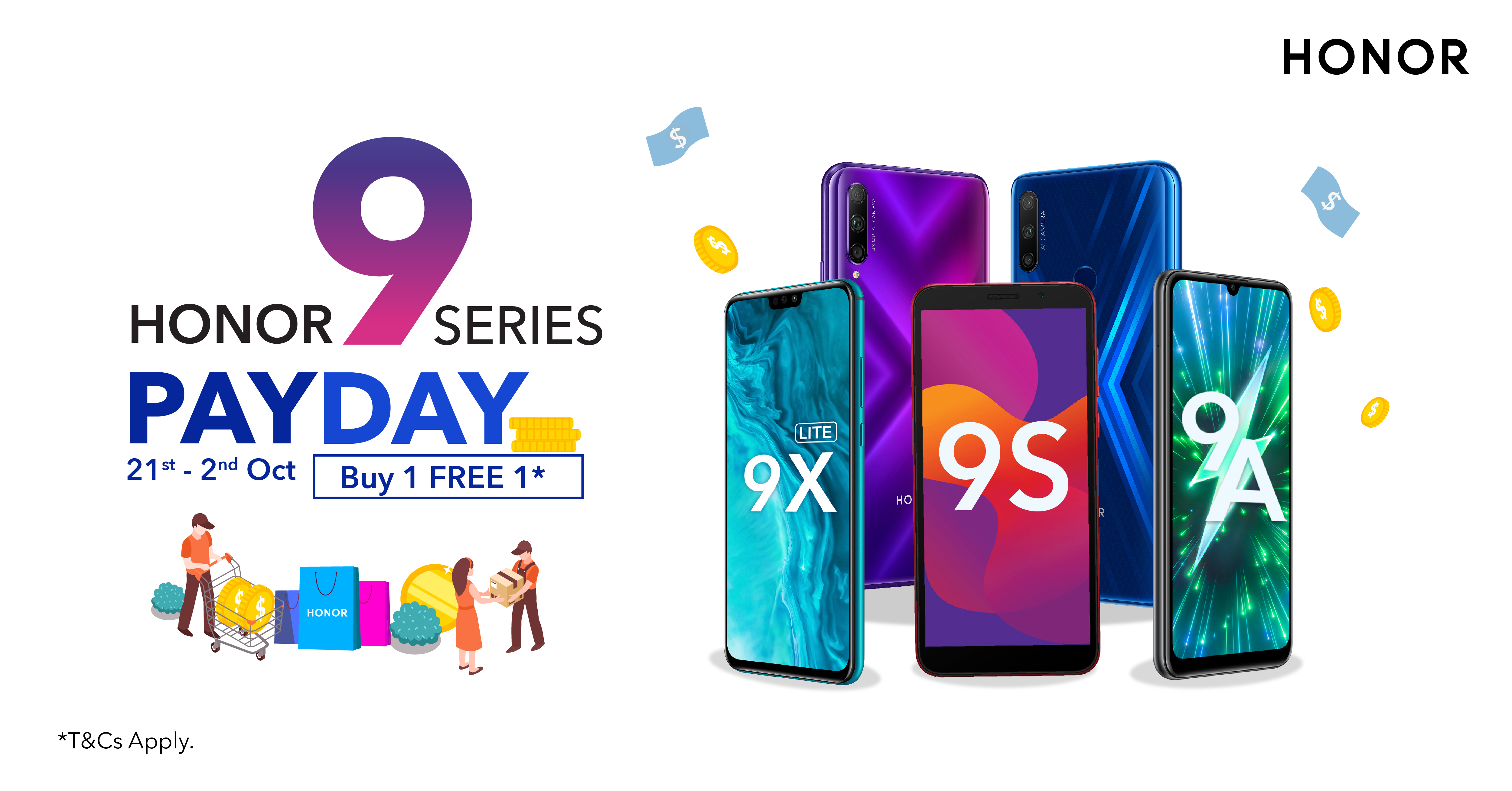 HONOR 9 Series Pay Day Sale ini bermula dari 21 hingga 30 September 2020 di semua HONOR Experience Stores (HES) dan kedai rakan kongsi manakala jualan atas talian bermula dari 25 September hingga 2 Oktober 2020 di laman rasmi HONOR, Hihonor.
