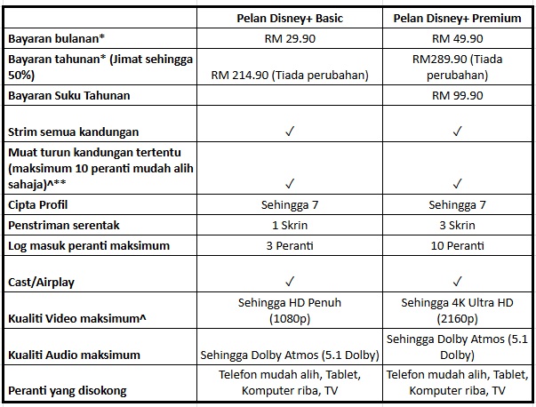 Walau bagaimanapun, harga langganan tahunan kekal tidak berubah iaitu RM214.90 untuk Disney+ Basic dan RM289.90 untuk Disney+ Premium.
