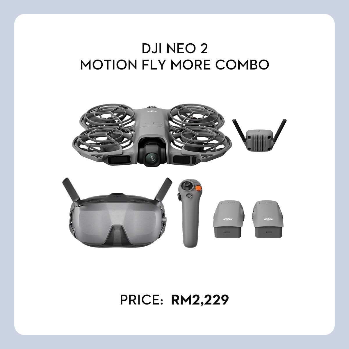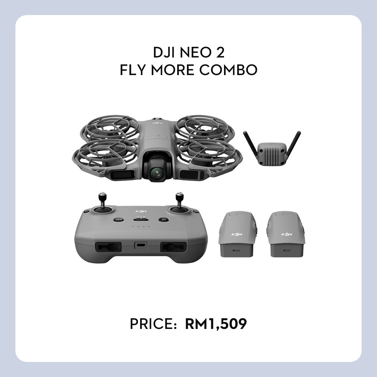 DJI Neo 2 sudah pun mula dijual pada harga RM899 untuk dron sahaja, dan dari RM1,209 bagi pembelian kombo. Untuk pembelian secara dalam talian, layari kedai rasmi DJI di: