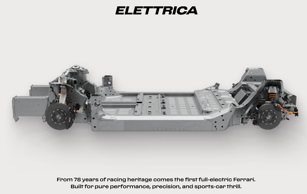 Ferrari Elettrica turut menampilkan pusat graviti 80 mm lebih rendah berbanding model ICE, sistem suspensi aktif generasi ketiga, serta mod pemanduan “Range”, “Tour” dan “Performance”.