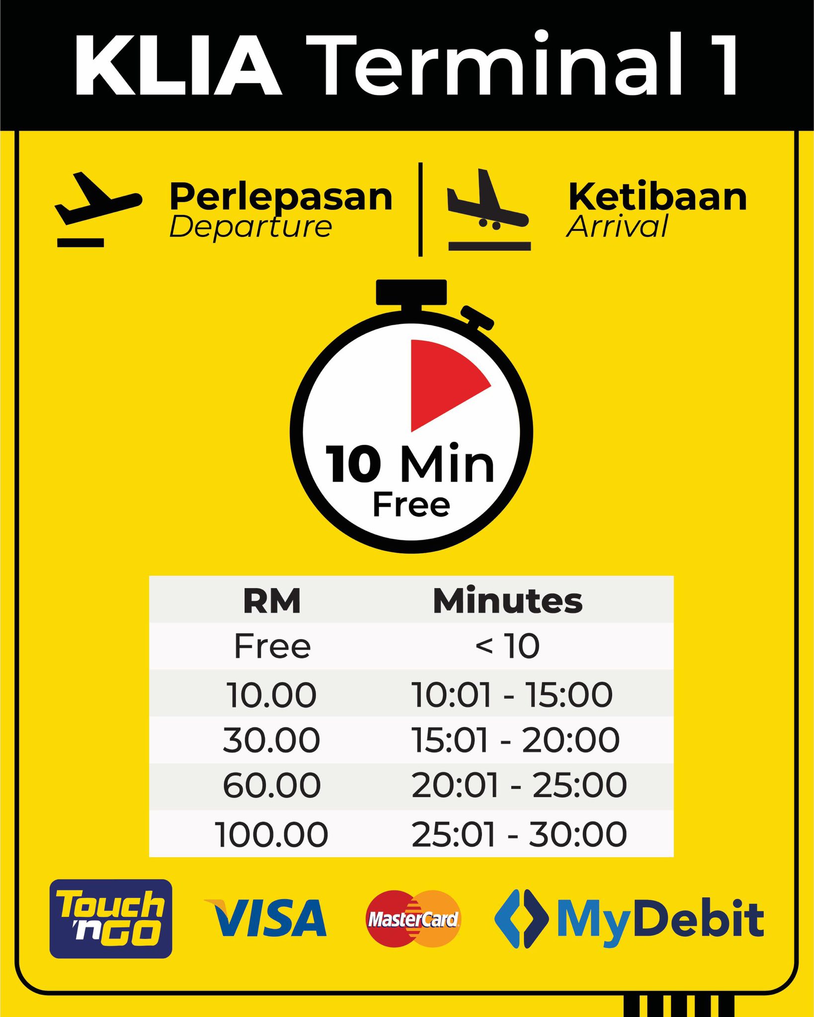 - Tempat Letak Kereta Jangka Panjang (LTCP) – 30 minit percuma