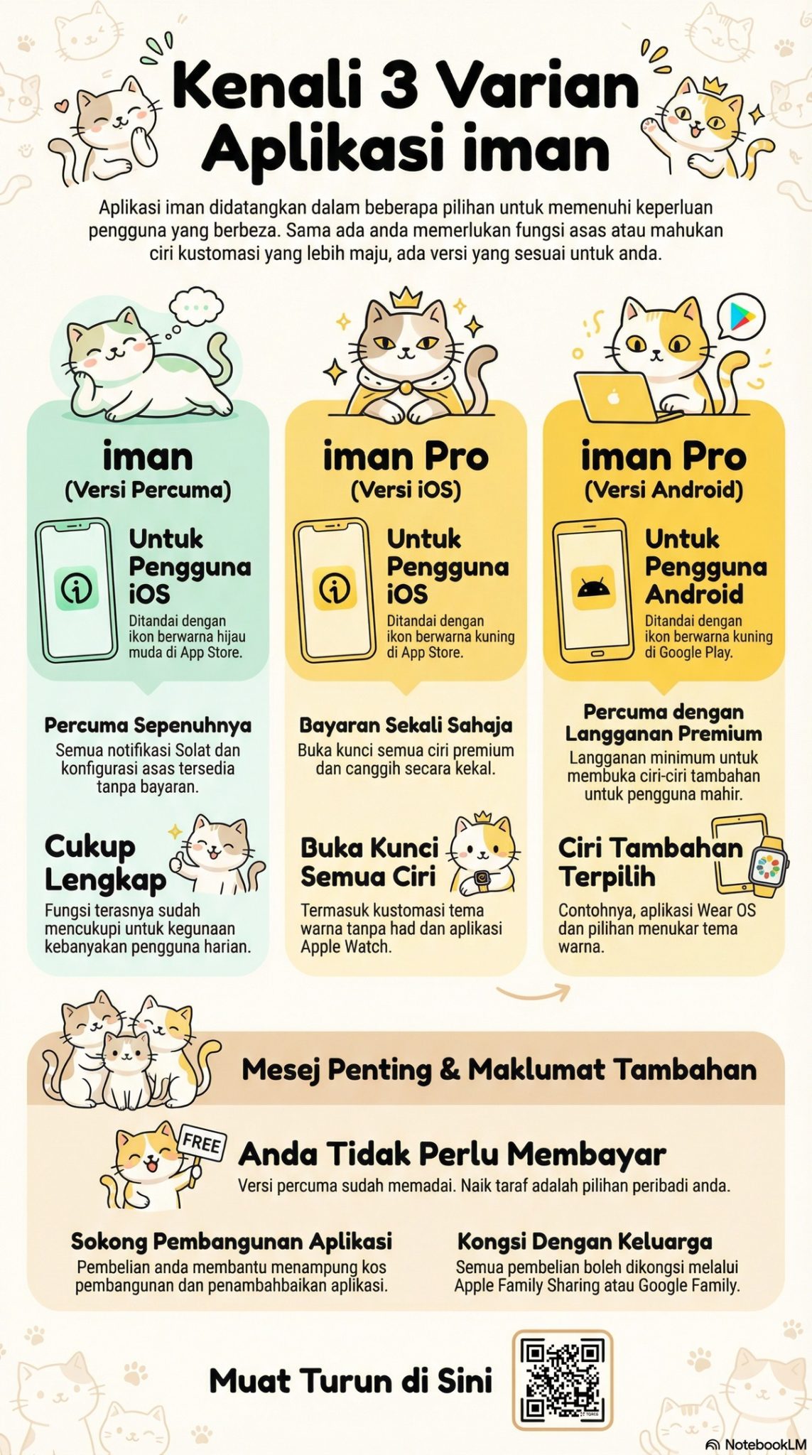 Aplikasi ini turut menawarkan versi iman Pro Premium melalui langganan RM3.99 sebulan atau RM39.99 setahun. Namun begitu, bagi kebanyakan pengguna, iman Pro sahaja sudah mencukupi.