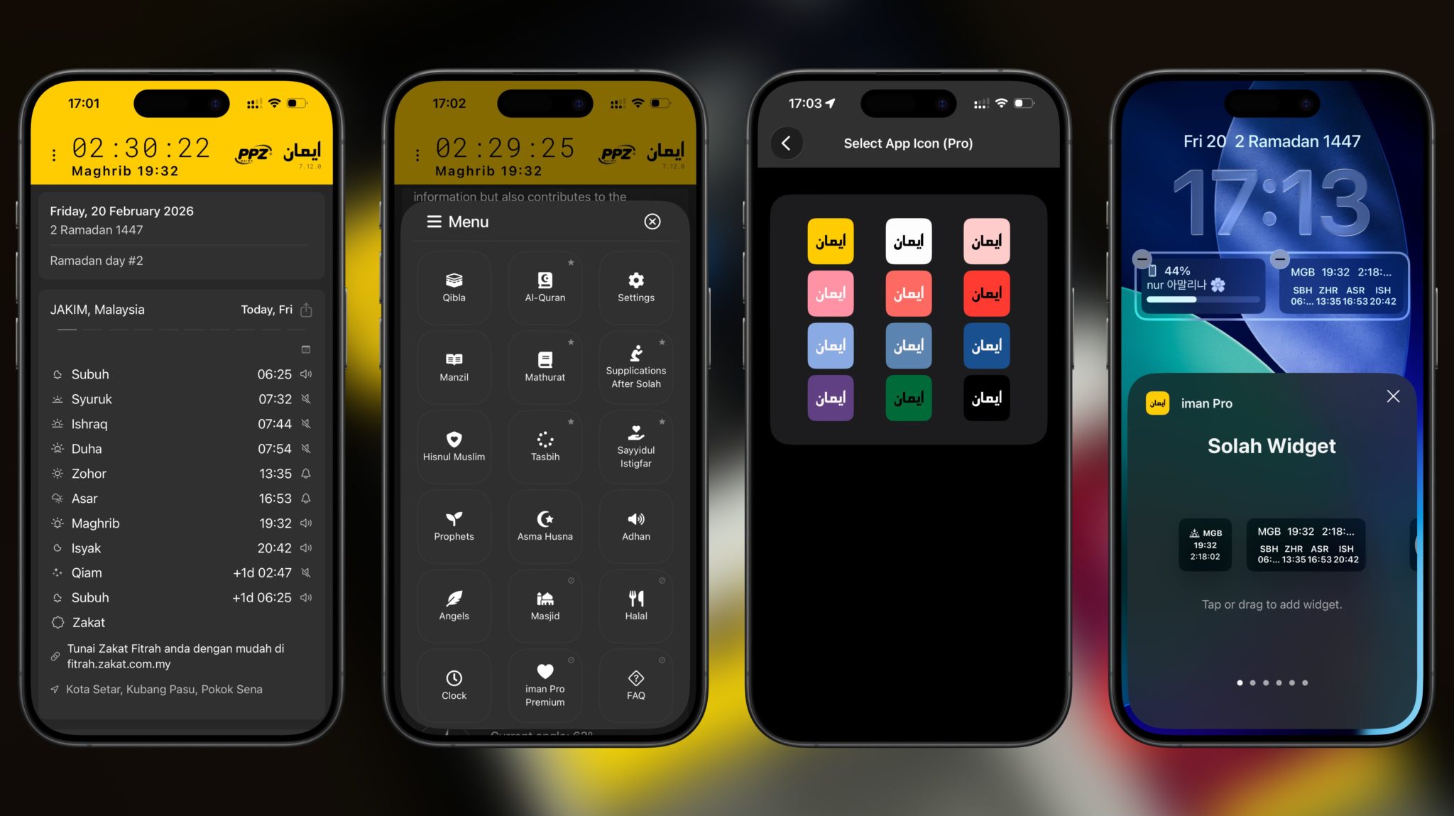 Sebelum ini, iman Pro tersedia di App Store pada harga RM9.90 untuk bayaran sekali sahaja. Berbanding versi percuma iman (ikon berwarna hijau), iman Pro menawarkan ciri tambahan seperti widget, sokongan Siri Shortcut, tema yang boleh diubahsuai, kemas kini lokasi secara latar dan fungsi lain yang memudahkan pengurusan solat harian.