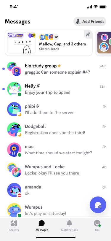 Perubahan pertama yang akan anda saksikan sebaik sahaja anda membuka aplikasi ini adalah bar navigasi di bahagian bawah paparan antara muka aplikasi Discord.
