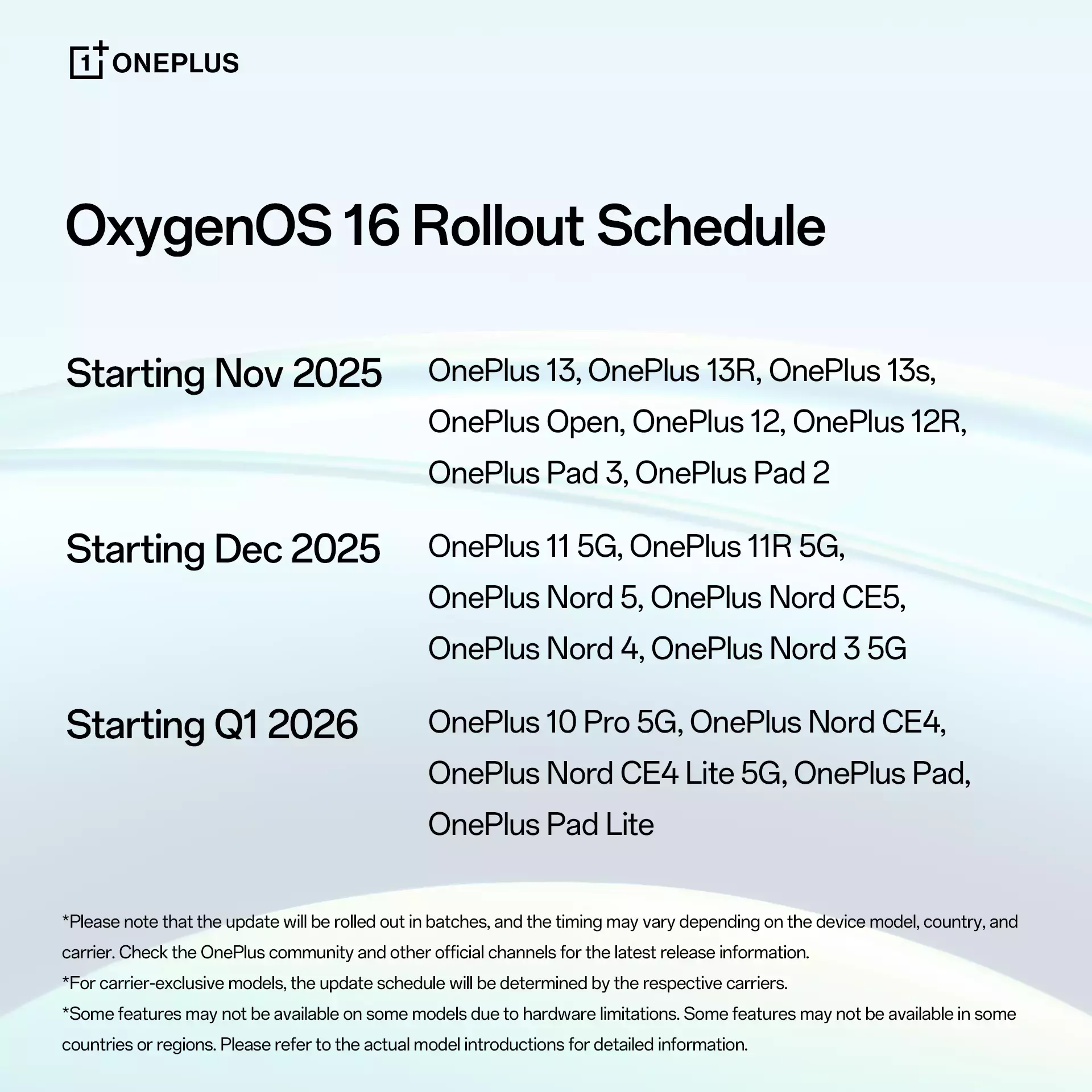 Kemas kini beta OxygenOS 16 kini telah dibuka kepada pengguna yang ingin mencubanya lebih awal, sementara pelancaran stabil dijangka bermula pada November 2025 untuk model utama seperti siri OnePlus 13 dan 12.
