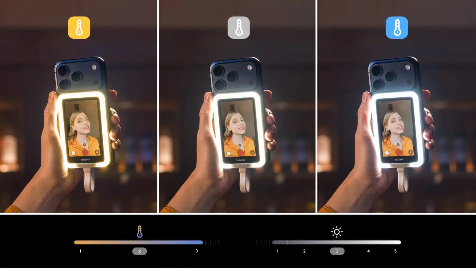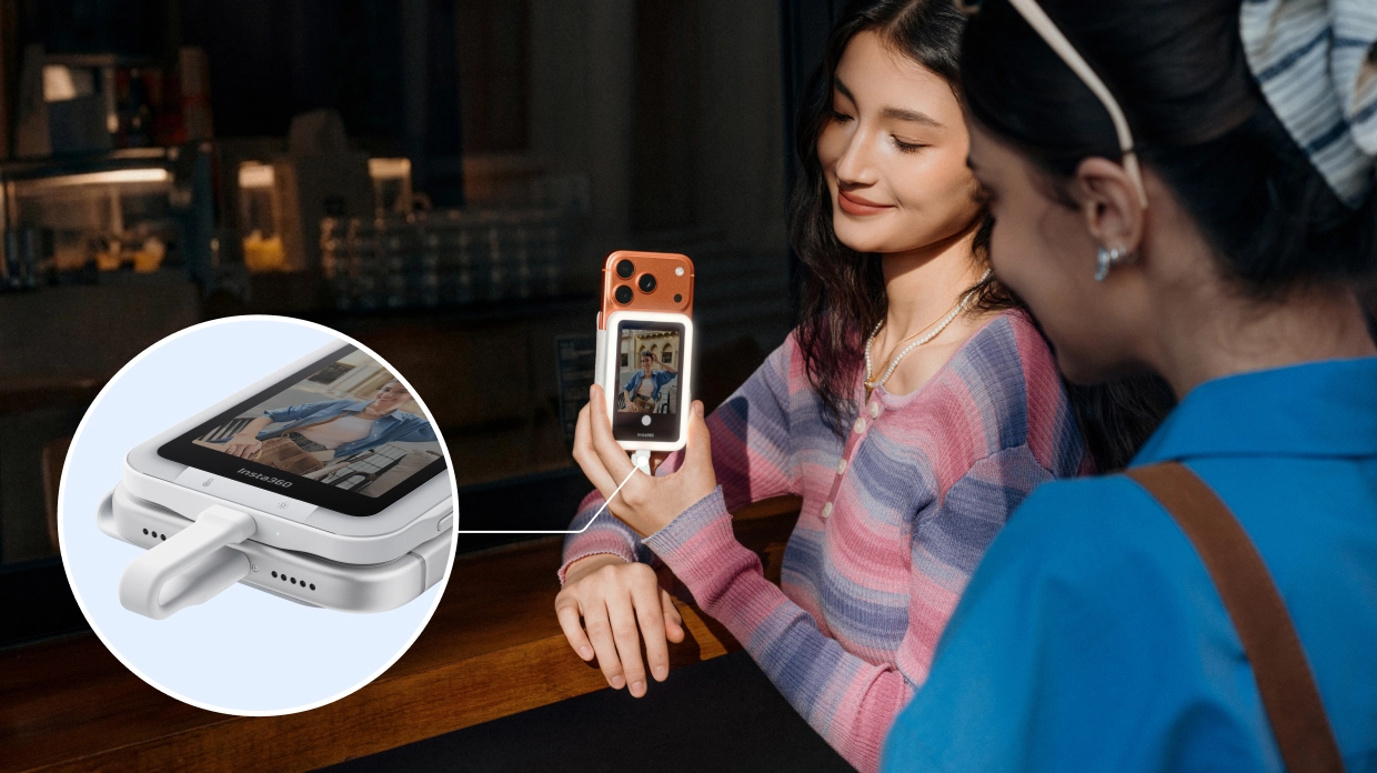 Insta360 Snap Selfie Screen serasi dengan siri iPhone 15/16 /17 (MagSafe + USB-C) serta pelbagai Android yang menyokong DisplayPort Alt Mode.