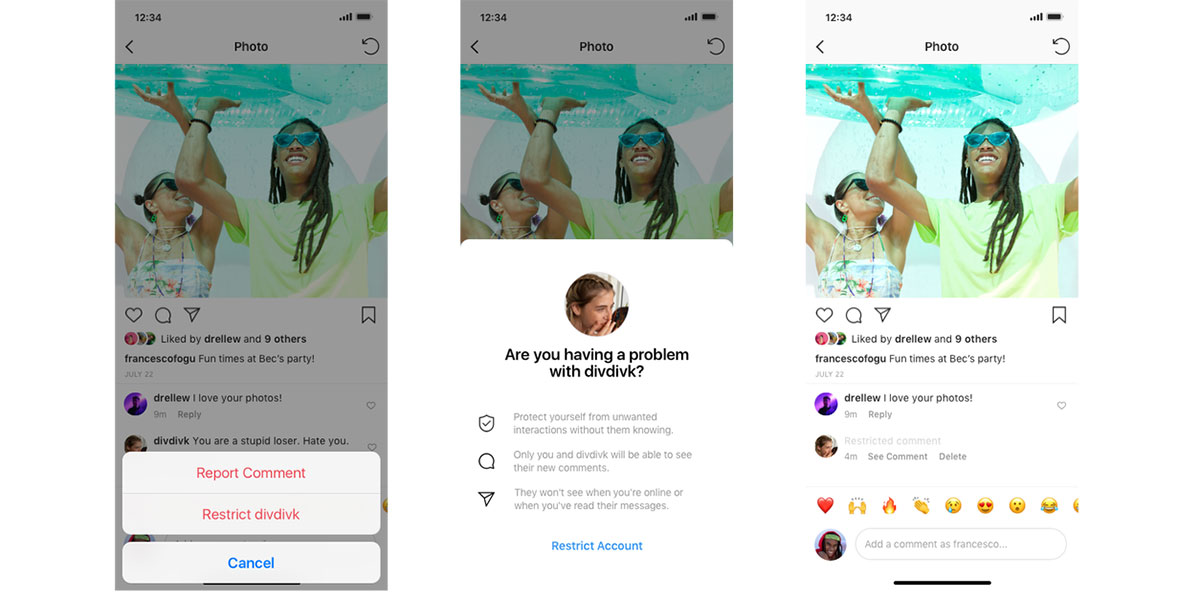 Ciri tersebut membolehkan penggunanya menyembunyikan komen negatif yang ditinggalkan di bawah gambar terhadap individu yang membuat hantaran sesebuah komen.