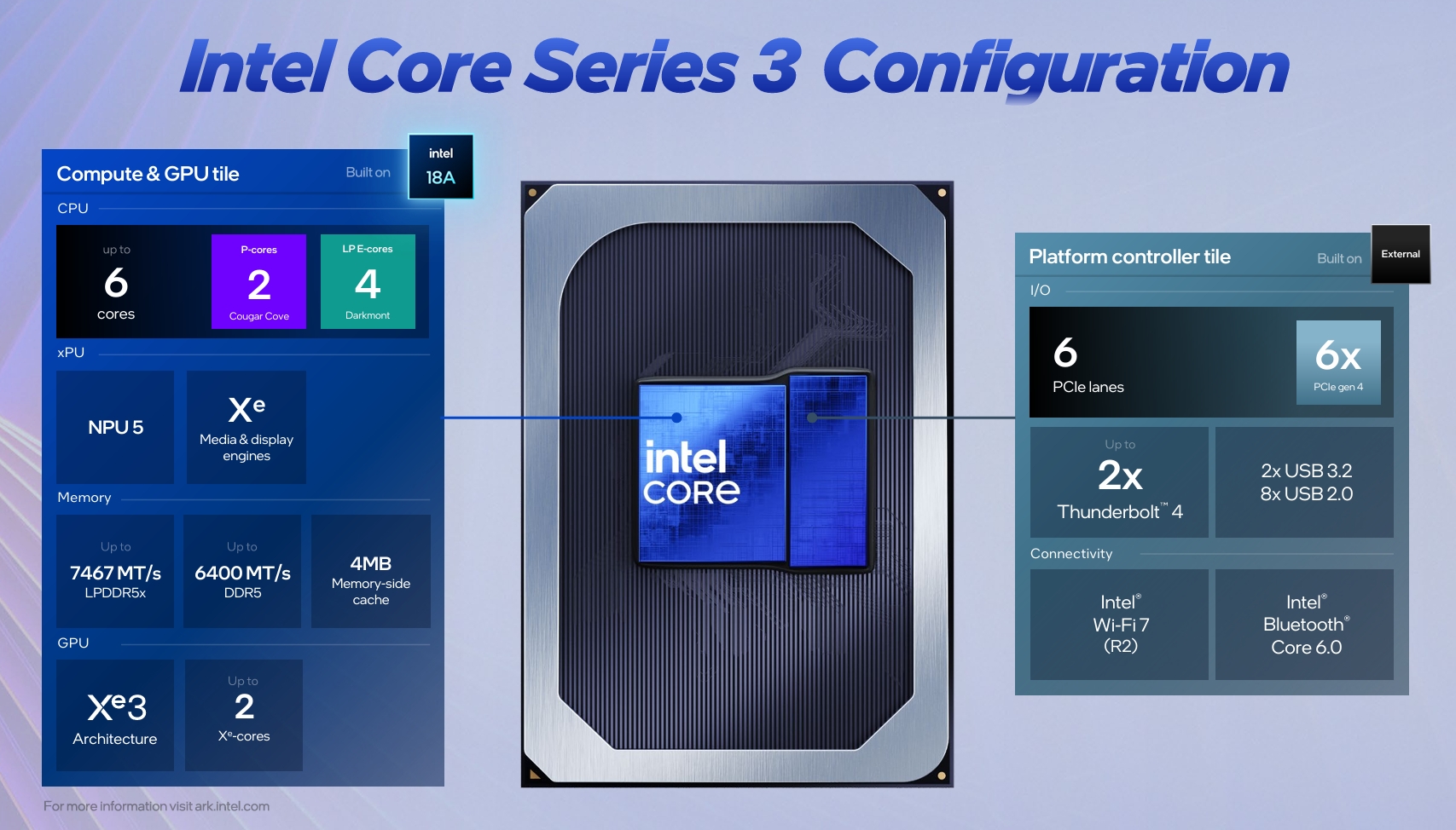 Dibina berasaskan Core Ultra Series 3 (nama kod Panther Lake), ia menggunakan teknologi nod proses Intel 18A yang direka khusus untuk pengkomputeran harian.