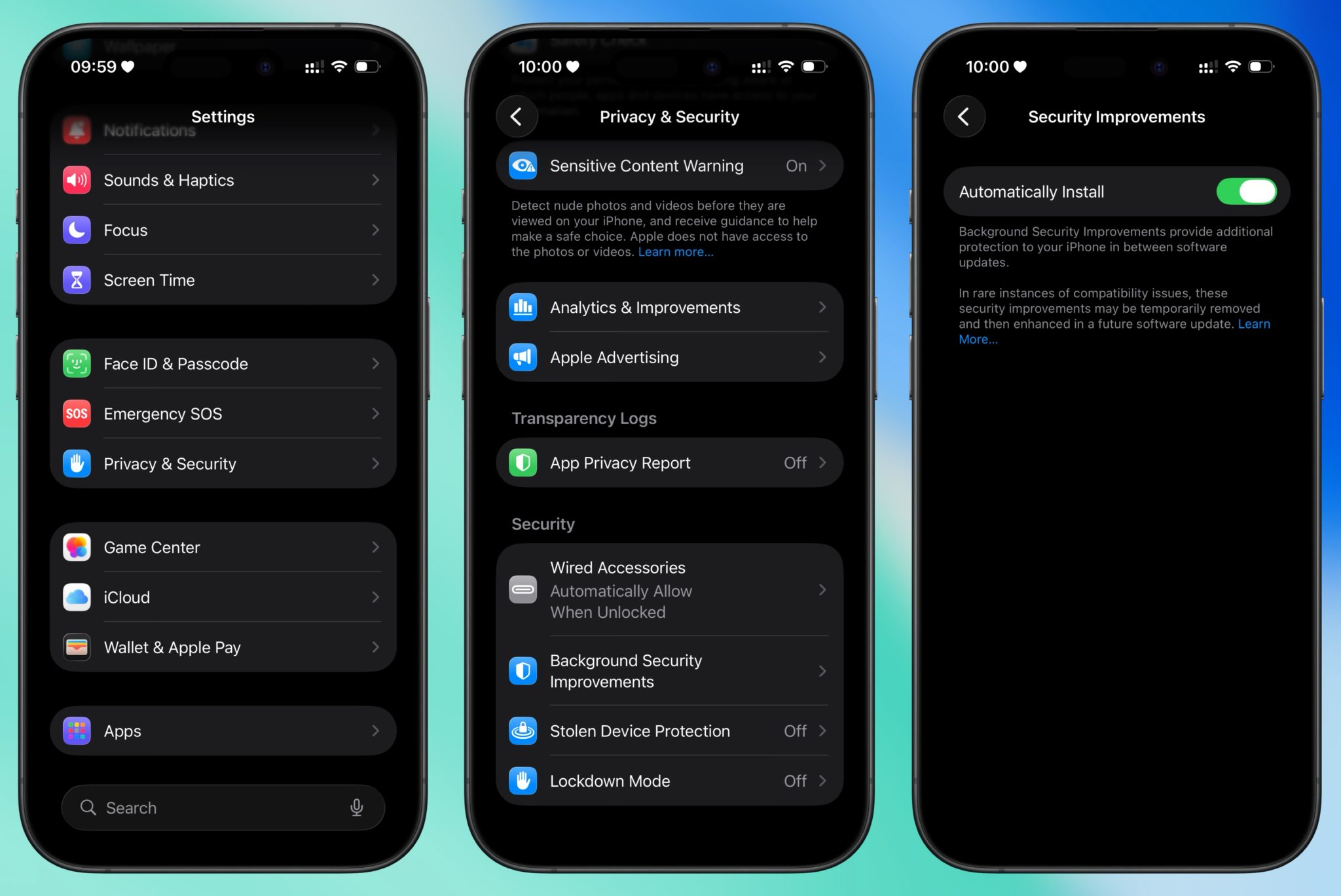 Ciri ini merupakan versi baharu daripada fungsi “Rapid Security Responses” sebelum ini, yang membolehkan Apple menghantar kemas kini keselamatan tanpa perlu mengeluarkan versi penuh iOS yang baharu.