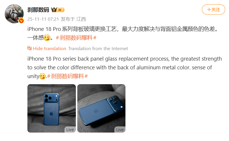 Sebagai rujukan, iPhone 17 Pro menggunakan potongan kaca di bahagian panel belakang untuk menyokong pengecasan MagSafe. Perbezaan warna antara rangka aluminium dan potongan Ceramic Shield 2 menjadikan rekaan belakangnya kelihatan seakan dua warna.