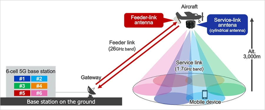 Syarikat konglomerat multinasional Jepun, SoftBank Corp. telah berjaya menjalankan ujian lapangan penghantaran 5G terus ke telefon pintar biasa menggunakan stesen pangkalan udara yang terbang 3,000 meter di atas Pulau Hachijō, Jepun.