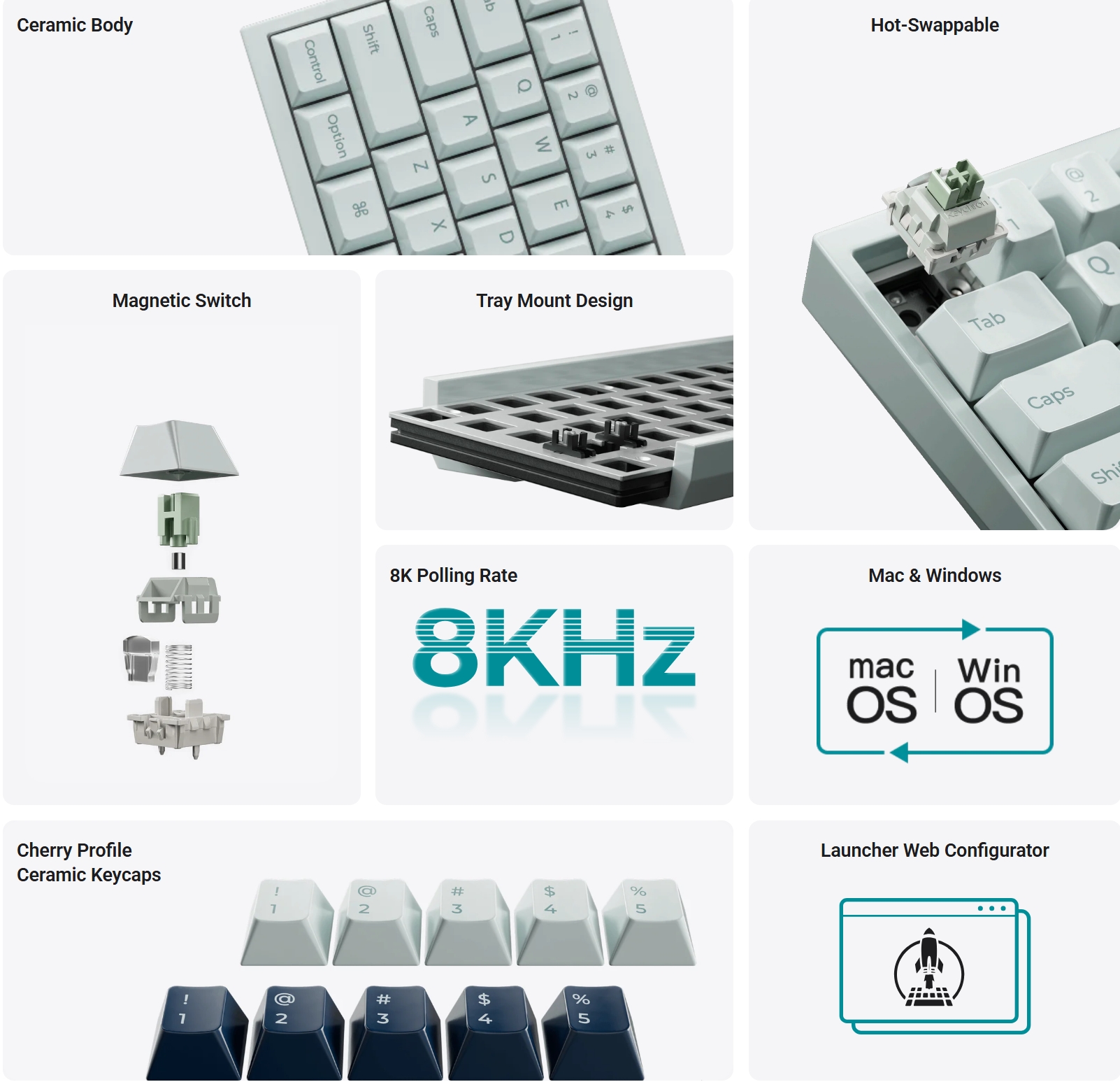 Papan kekunci premium ini dilengkapi suis magnetik ultra-pantas dengan kadar polling 8,000 Hz (berapa kali sesaat papan kekunci melaporkan data tekanan kekuncinya ke komputer anda), sekali gus memberikan tindak balas segera untuk permainan dan menaip untuk kerja harian.
