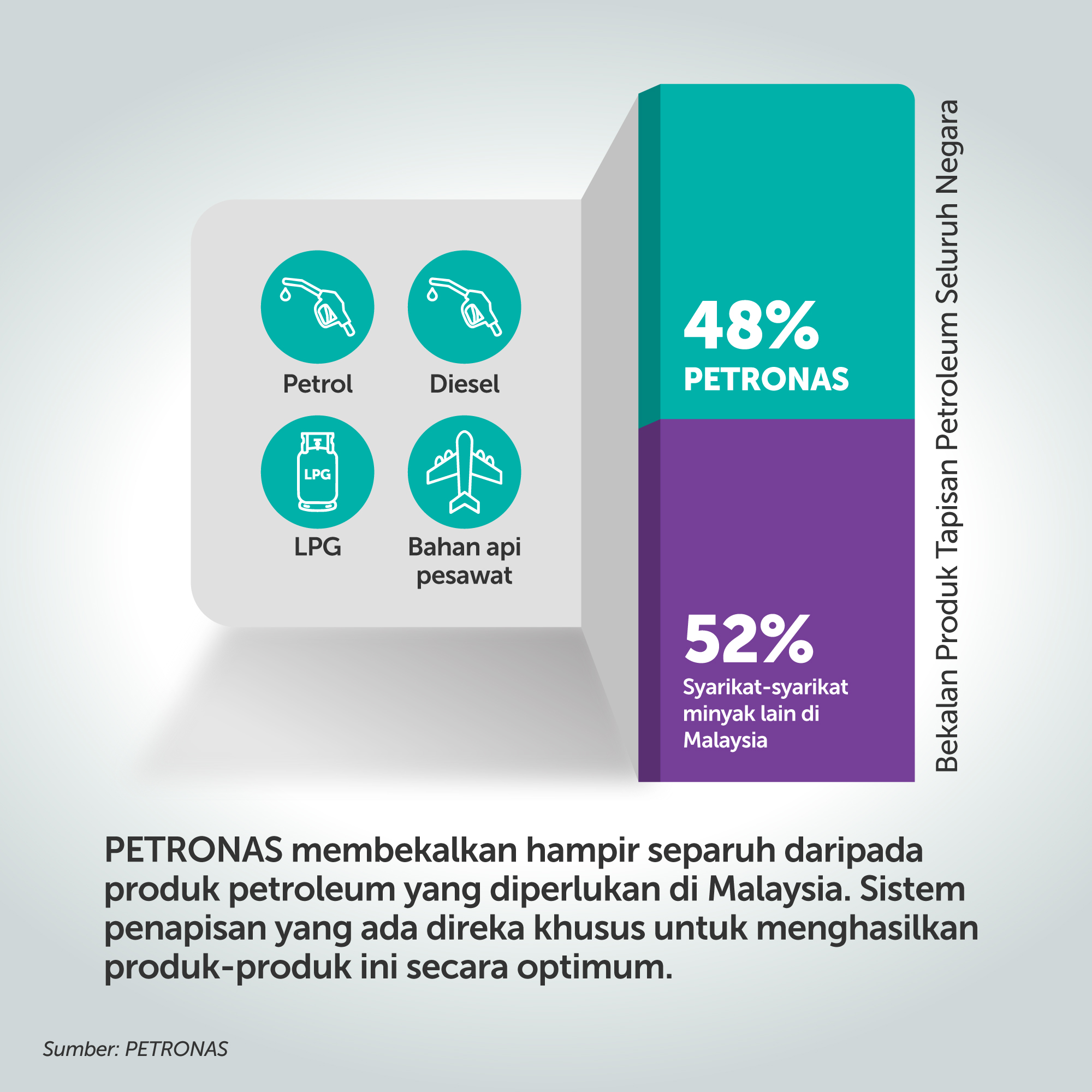 Seterusnya, produk yang siap diproses kemudian dihantar ke pusat pengedaran, sebelum diagihkan ke stesen minyak di seluruh negara.
