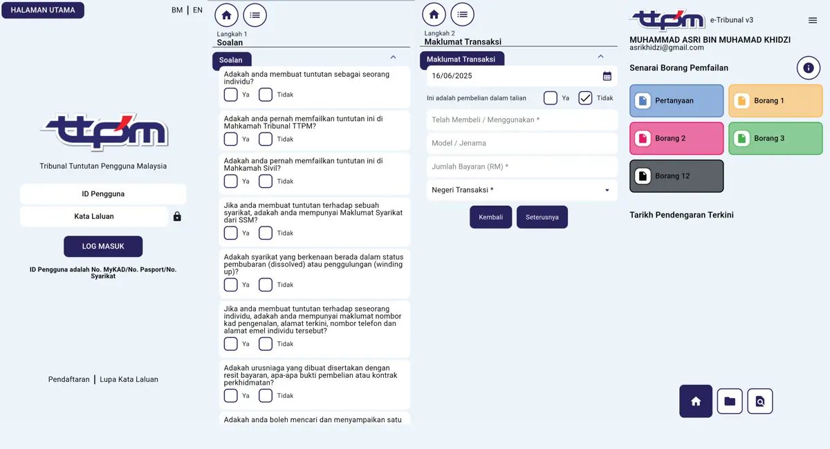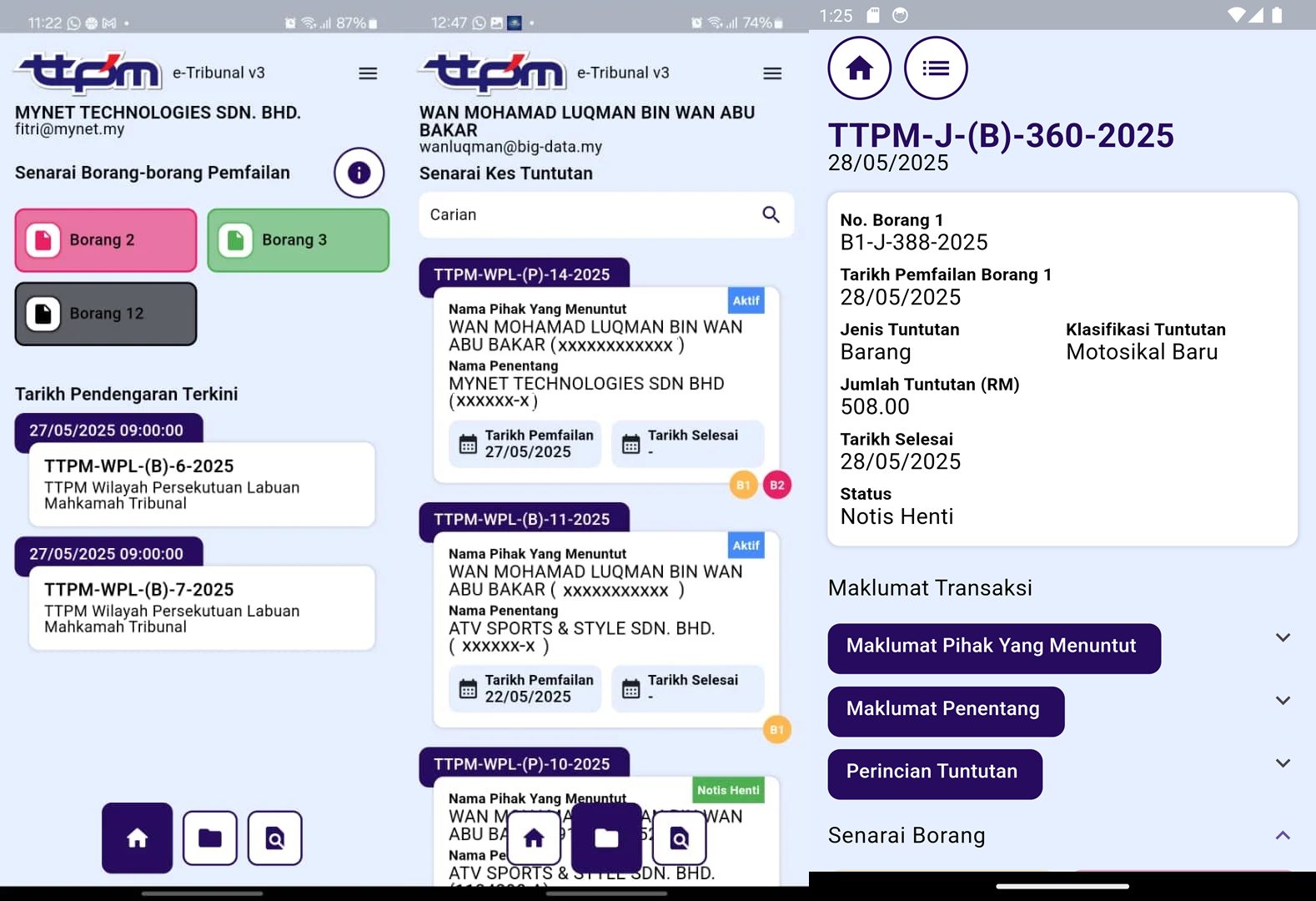 Melalui aplikasi ini, pengguna boleh memfailkan tuntutan, memuat naik dokumen sokongan dan membuat semakan status kes secara dalam talian tanpa perlu hadir secara fizikal ke pejabat TTPM.