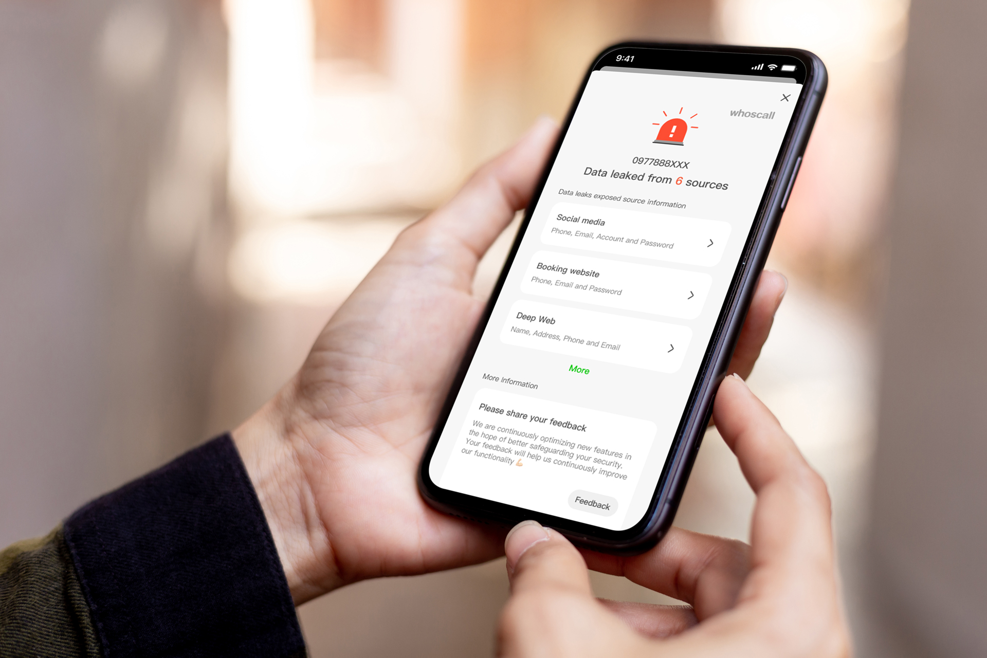 Gunakan ID Security Whoscall bagi menyemak kebocoran data peribadi dan Auto Web Checker untuk menerima amaran penipuan segera semasa melayari laman web yang mencurigakan.