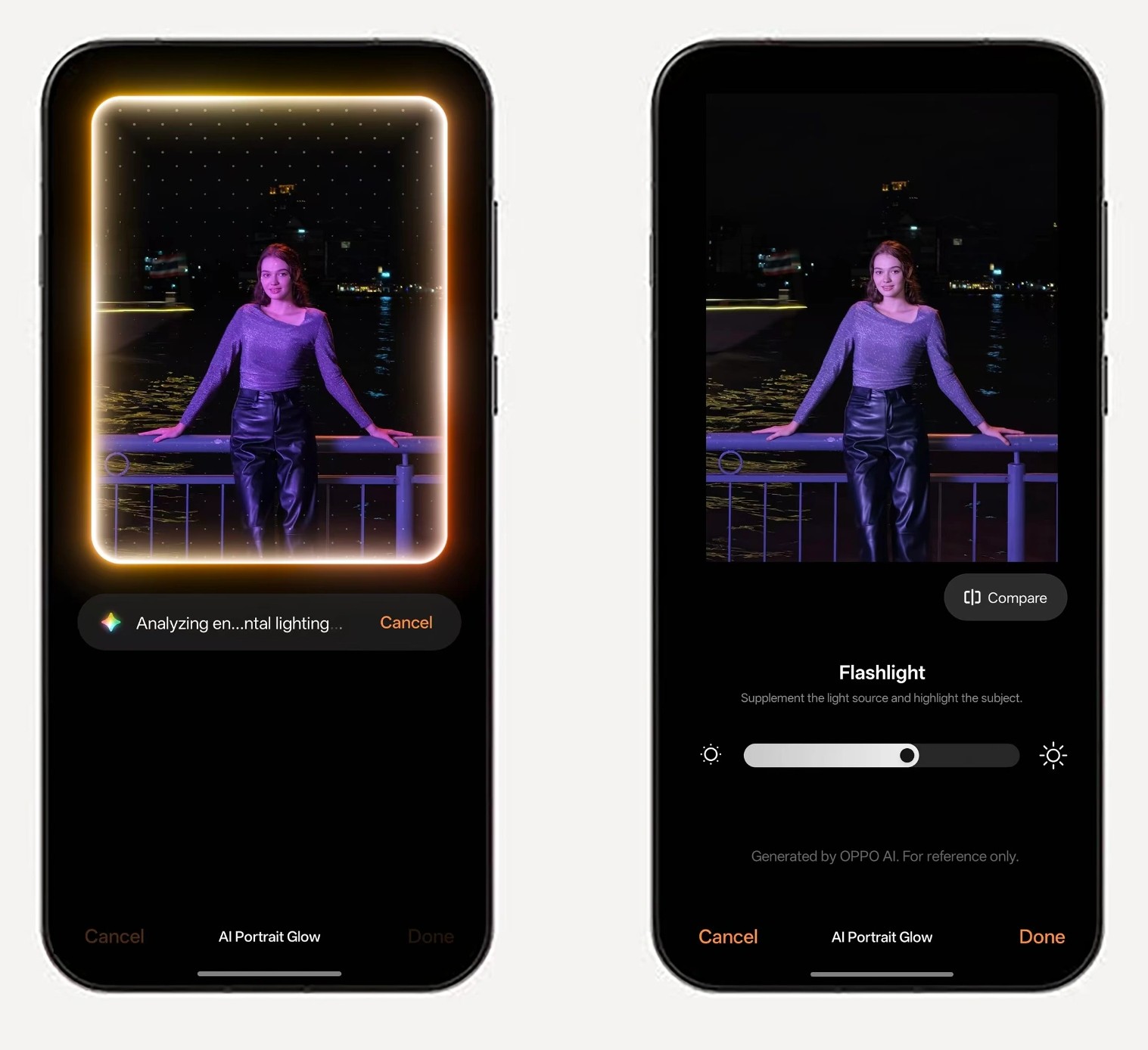 Ciri AI Portrait Glow pula menyerlahkan swafoto dalam pencahayaan rendah, disertai alat suntingan seperti AI Eraser dan Master Cut untuk video.