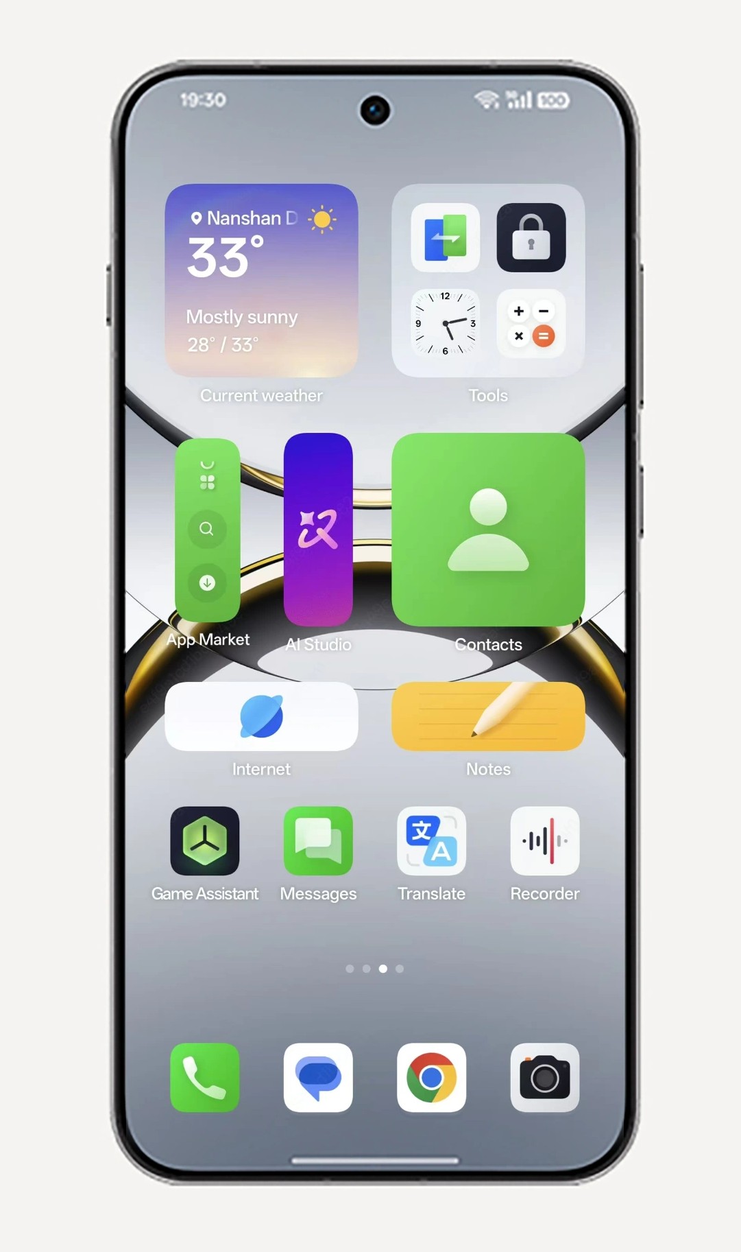 Reka bentuk antaramuka diinspirasikan cahaya semula jadi, menawarkan Motion Photos sebagai wallpaper, ciri Always-On Display (AOD) skrin penuh, dan susun atur Flux Home Screen yang fleksibel.