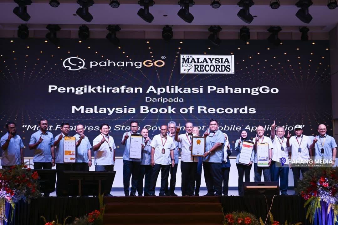 Aplikasi PahangGo mencatat sejarah apabila menerima pengiktirafan Malaysia Book of Records sebagai aplikasi kerajaan negeri di Malaysia dengan ciri perkhidmatan mudah alih terbanyak.