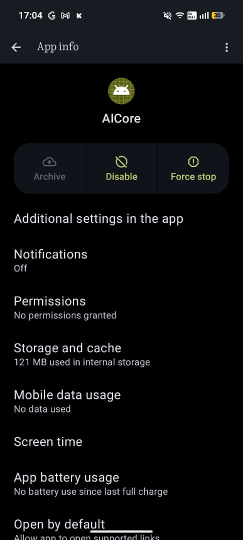 Jadi, jika anda ingin mematikan ciri ini ( tidak memerlukan fungsi AI dalam peranti), anda boleh lakukannya dengan melalui Settings > Apps > All Apps > AICore.