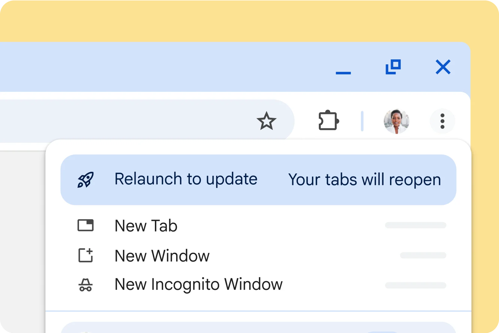 Jadi, jika anda belum menutup pelayar Chrome anda untuk beberapa hari, anda sepatutnya akan melihat kemas kini yang tertunda di sudut kanan atas pelayar anda, di sebelah gambar profil anda.