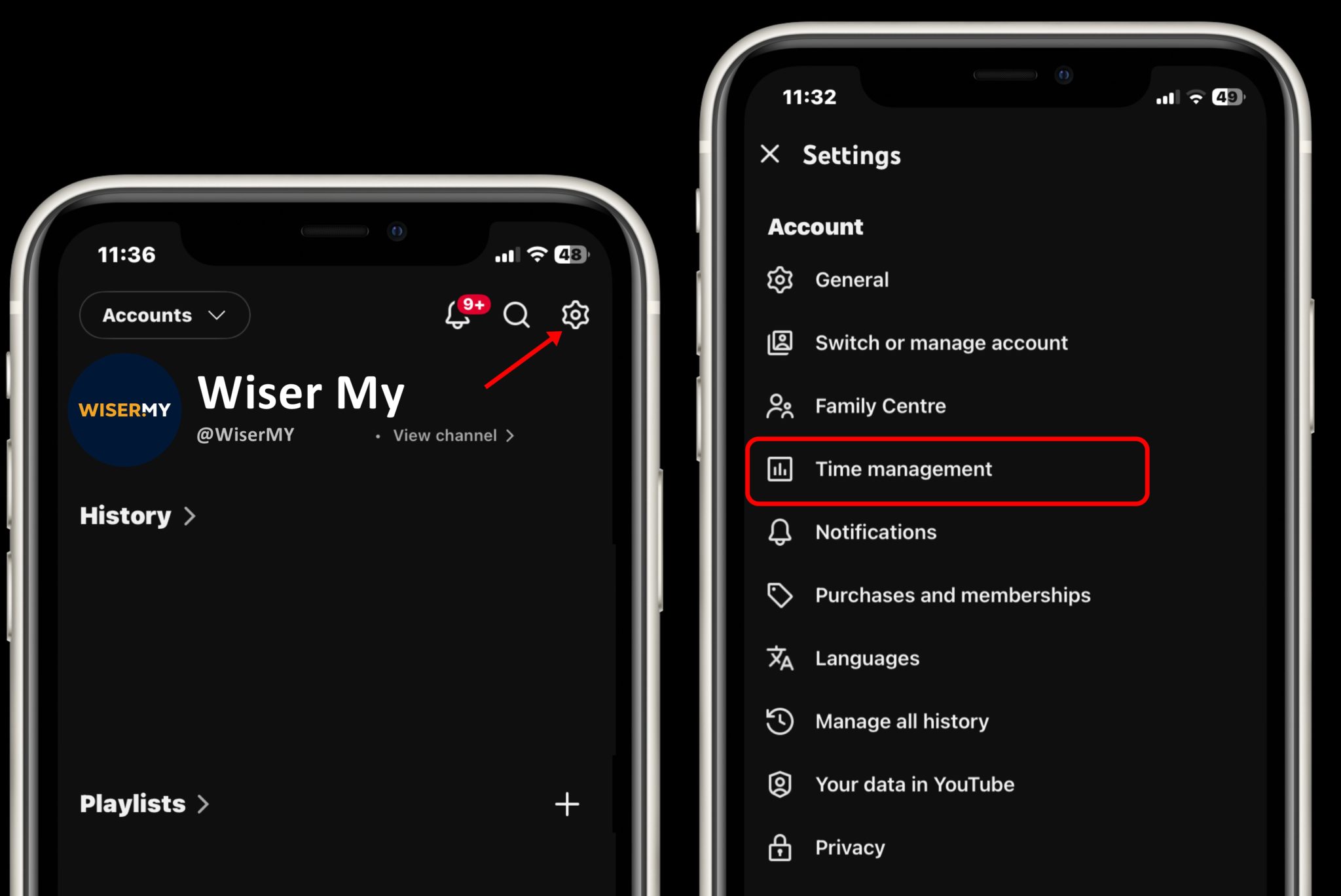 - Masuk ke bahagian “Settings” dan pilih “Time management” atau Pengurusan masa.