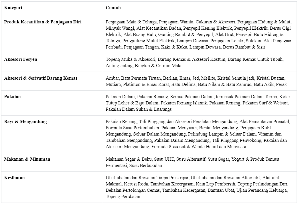 Selain itu, terdapat beberapa kategori produk yang tidak boleh dipulangkan disebabkan ubah fikiran.