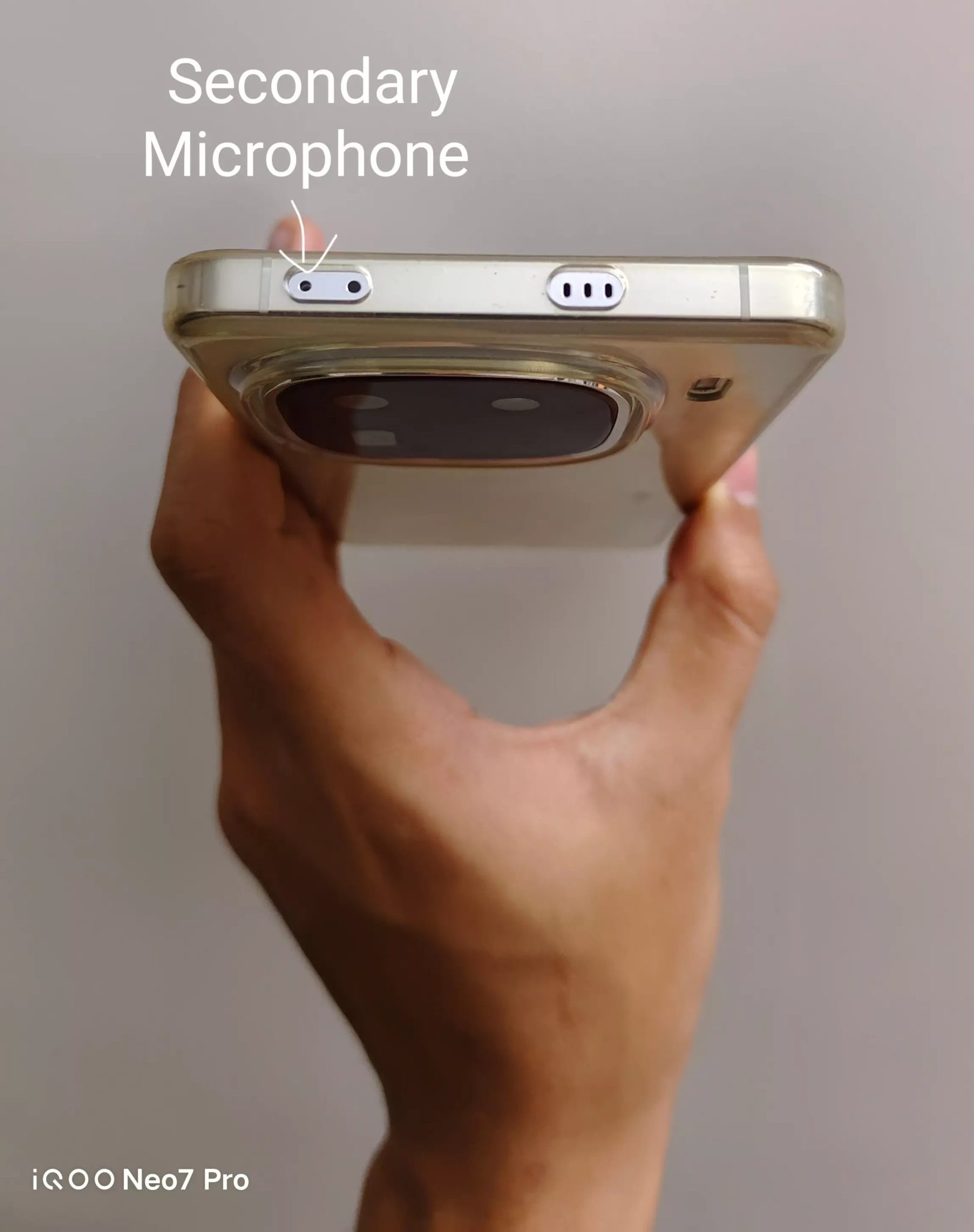 Manakala lubang bagi mikrofon tambahan di bahagian atas atau belakang peranti pula bertindak menyaring bunyi latar (noise cancellation) semasa rakaman video, panggilan video, atau penggunaan pembantu suara seperti Siri, Google Assistant, dan Bixby.